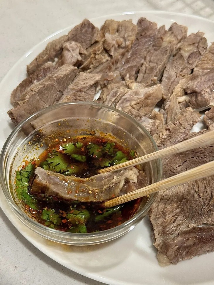 这种蒸熟的牛肉,肉里面保留了足够多牛肉的味道,配合上独家的蘸料,这味道太绝了。