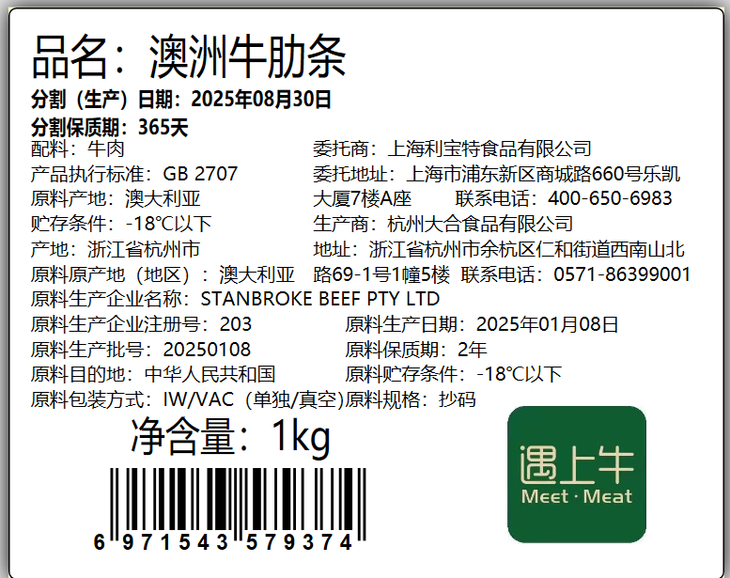 这才是真正原切,而且牛肋条来自澳洲STANBROKE BEEF大厂,厂号203,他们生产的牛肋条特别出名,并且牛肉品质呱呱叫!