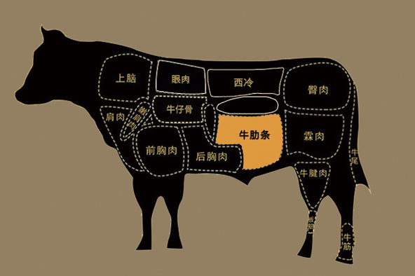 作为牛肋之间隐蔽的条状肌肉,剔除肋骨,方取一条肉,极其稀少又极珍贵。