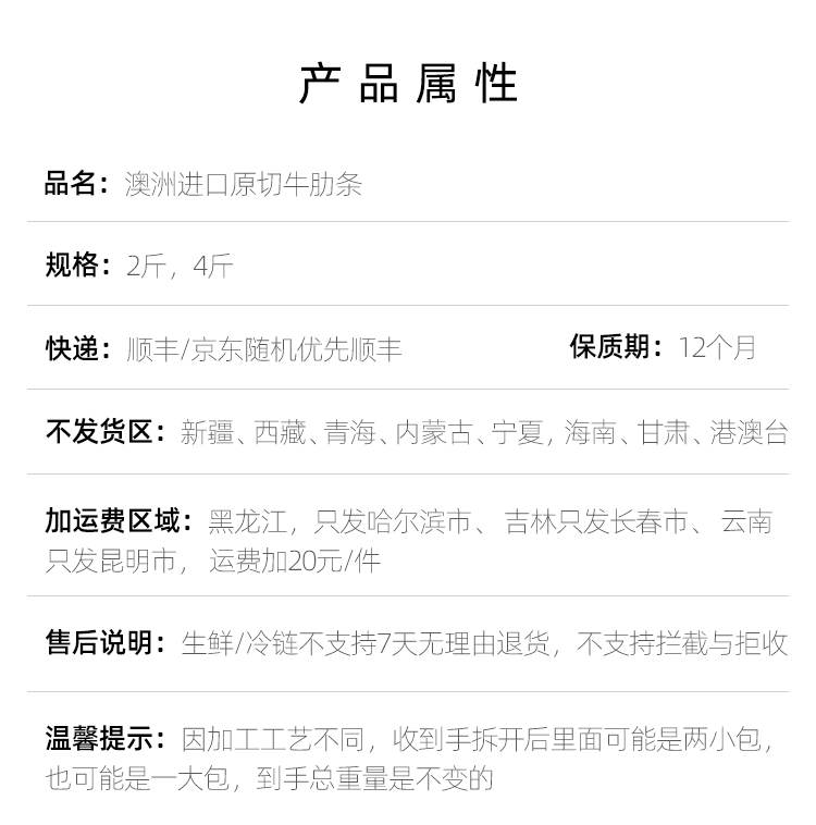 【72小时发货】澳洲进口原切牛肋条 | 肉质嫩滑多汁,脂香浓郁,煎烤炖蒸,2斤109元,4斤189元