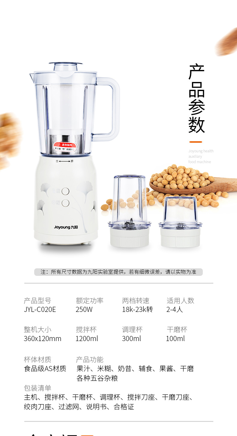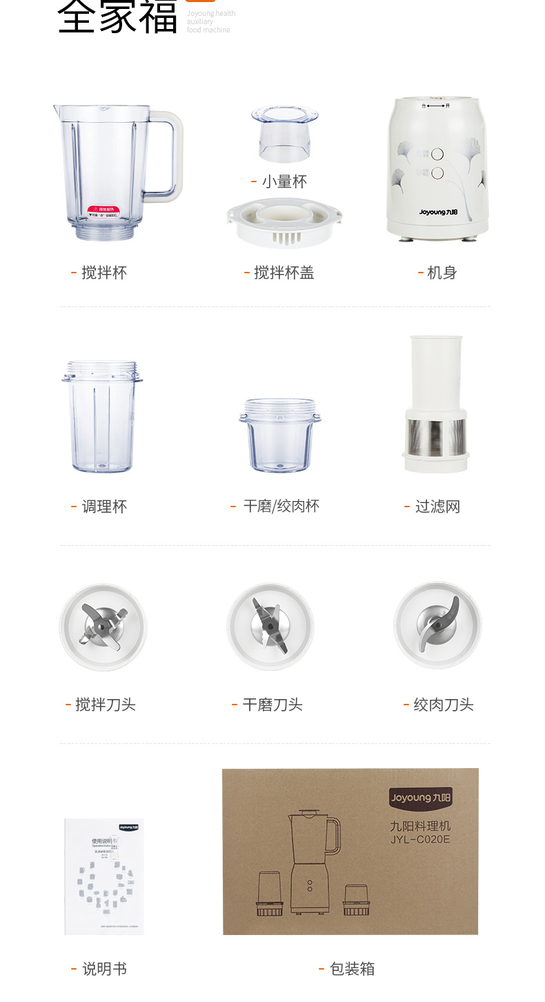 【3杯3刀】Joyoung/九阳JYL-C020E多功能料理机干磨绞肉辅食搅拌机