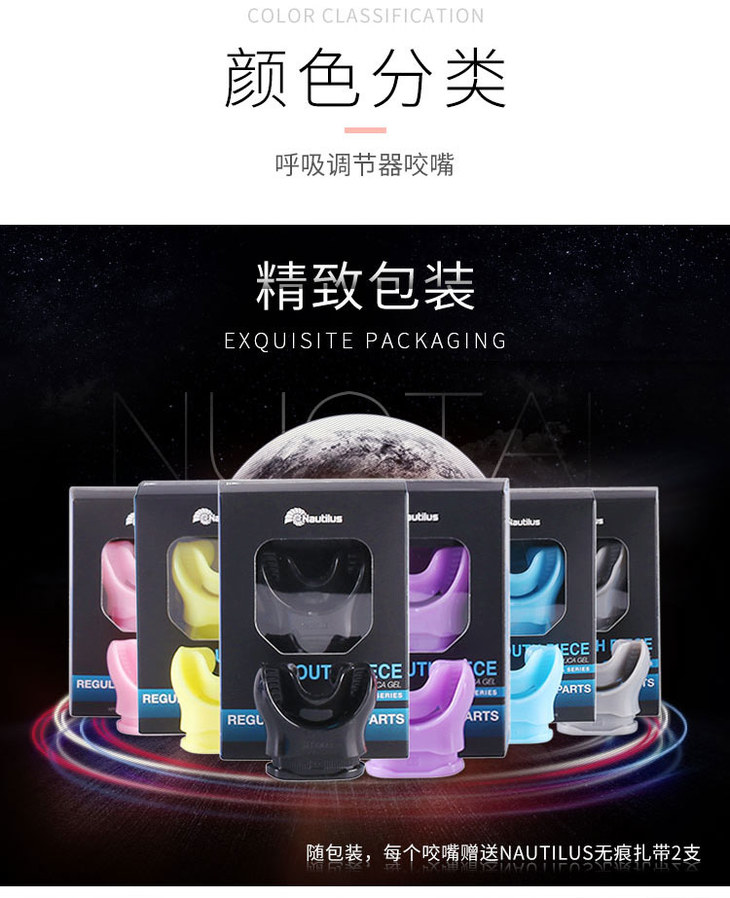 【装备】Nautilus舒适彩色咬嘴 深潜水肺潜水调节器二级头咬嘴美国FDA认证