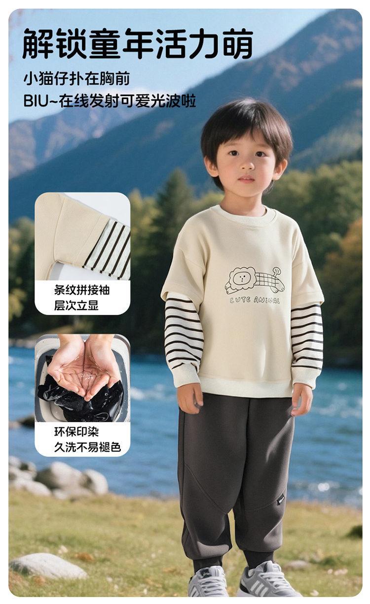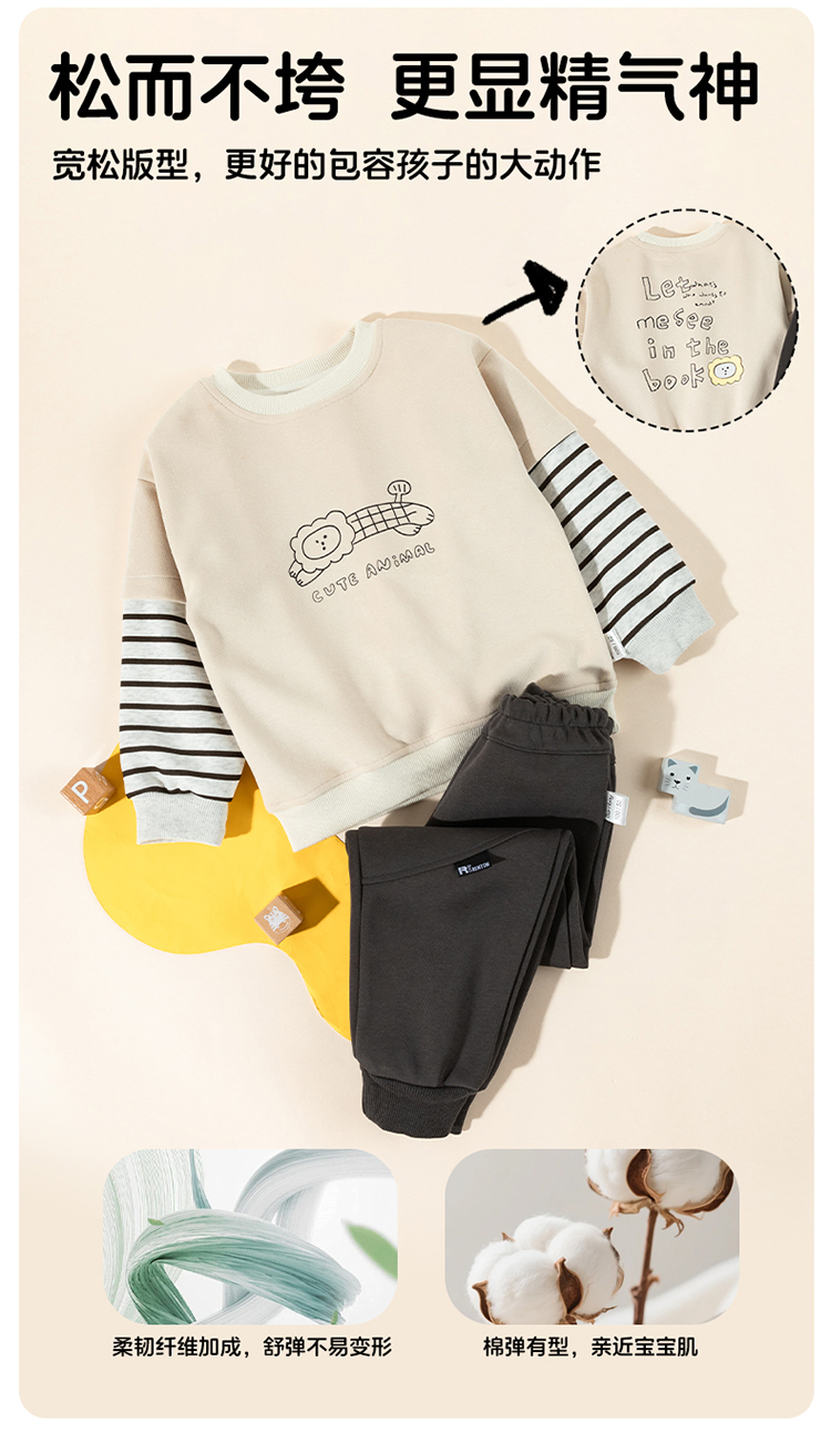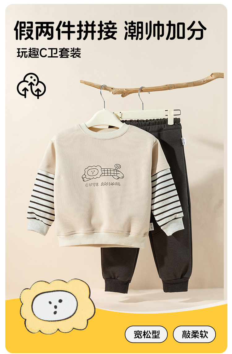 贝贝怡童装男童女童套装2025新款儿童春秋季长袖卫衣长裤两件套ZB3ET004