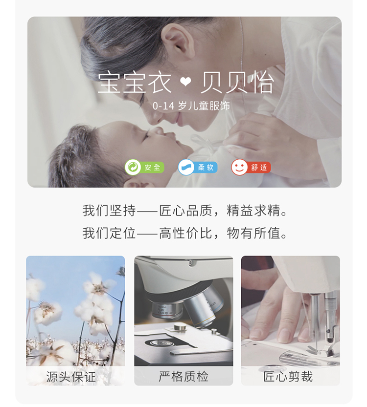 - 贝贝怡专注0-6岁婴幼儿服饰,坚持安全、柔软、舒适的产品理念,为千万中国家庭提供超高品质、安全可靠的婴幼儿服饰产品,妈妈放心,宝宝开心!