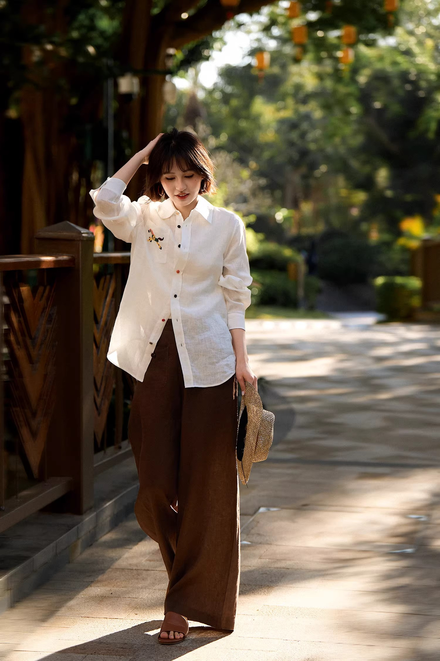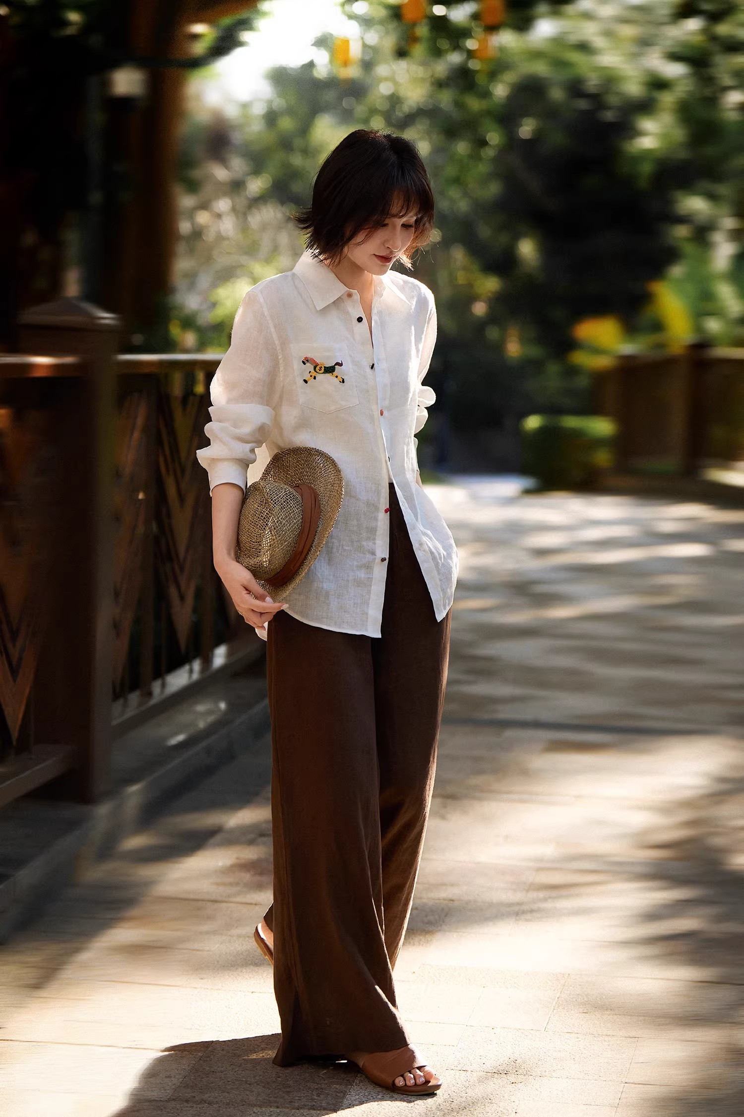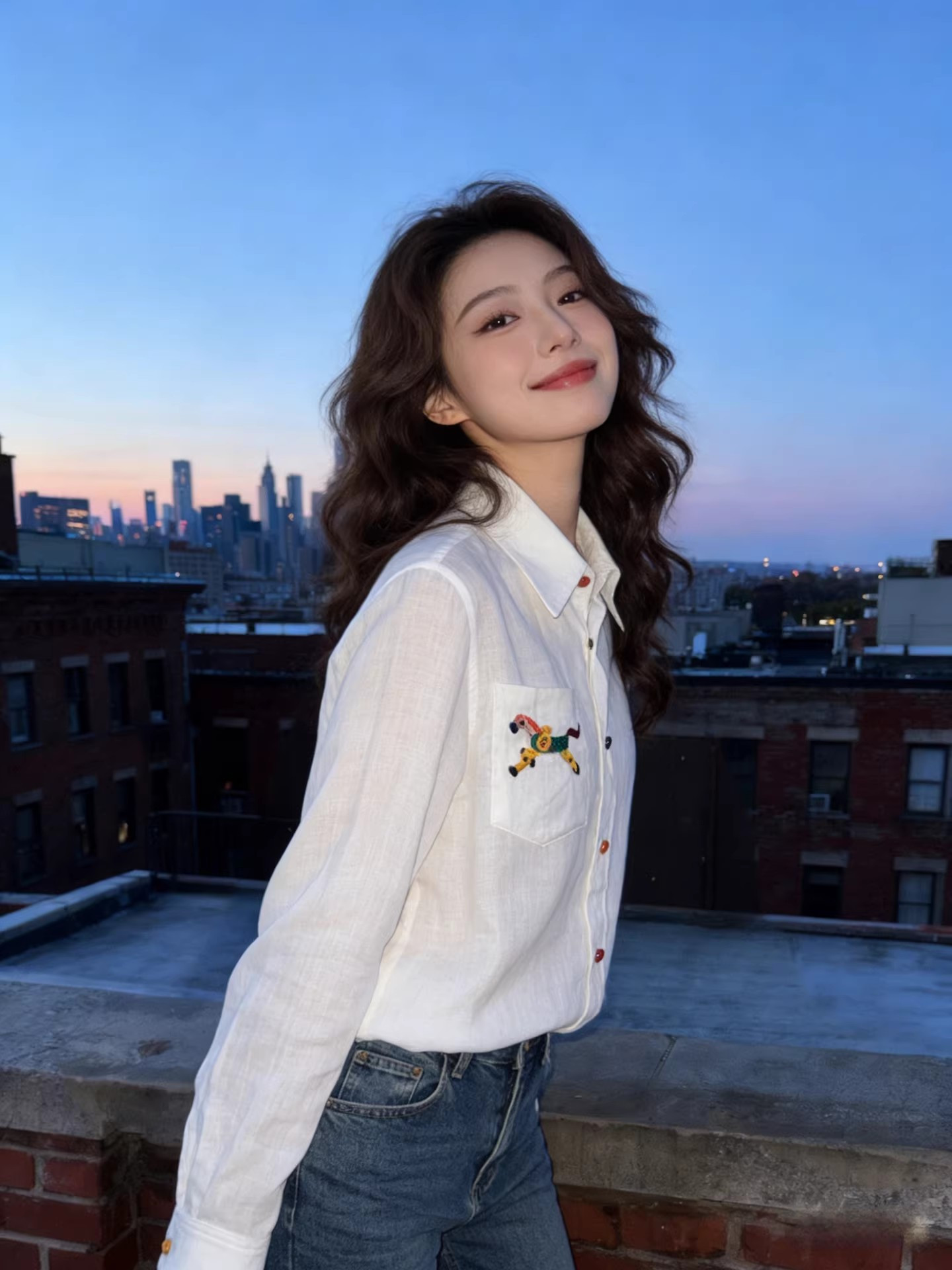 手工小马刺绣,精致又有质感,交错色的纽扣,低调又俏皮、又有腔调,慵懒的宽松版型,时尚百搭不挑人不挑年纪。