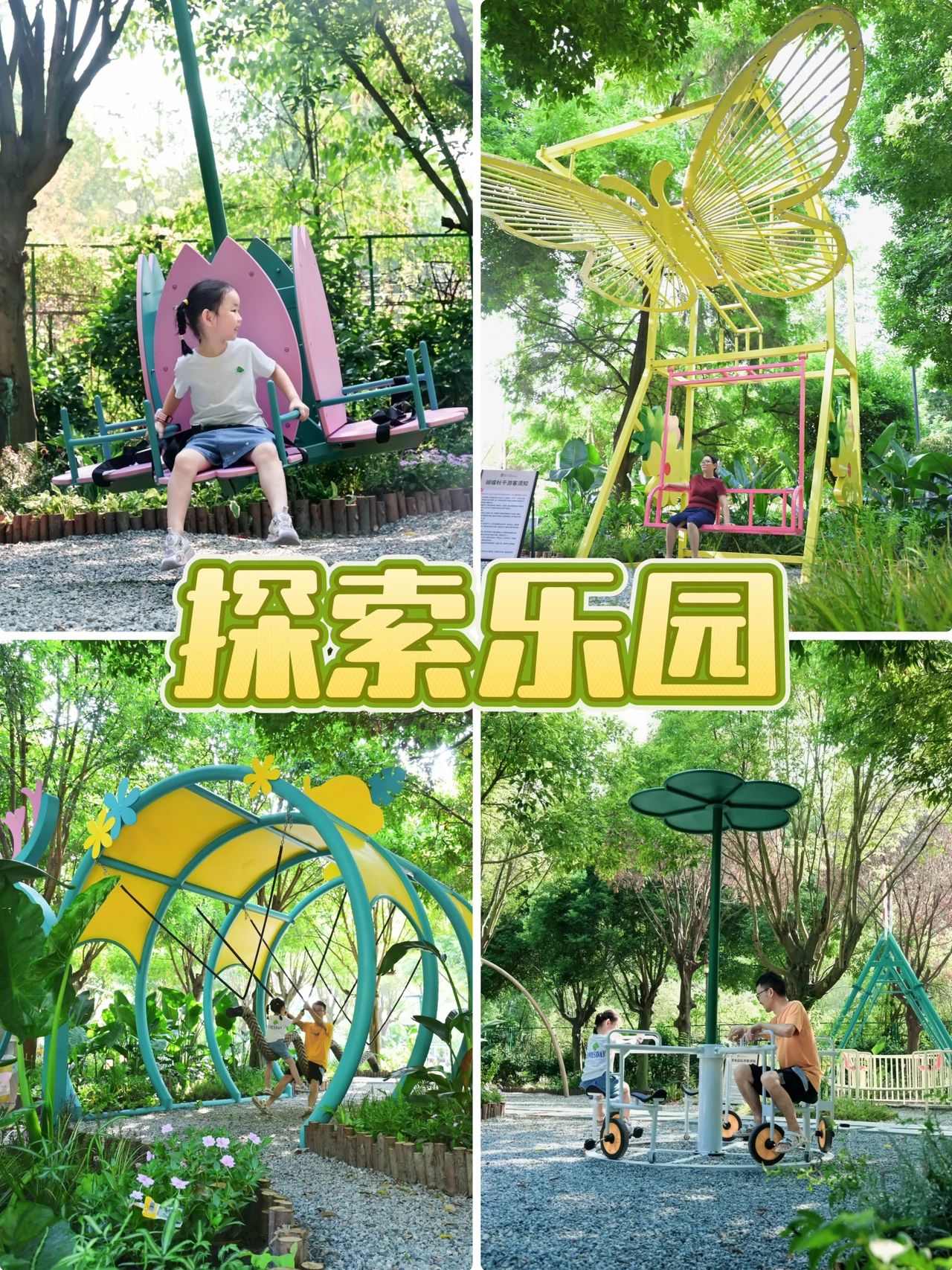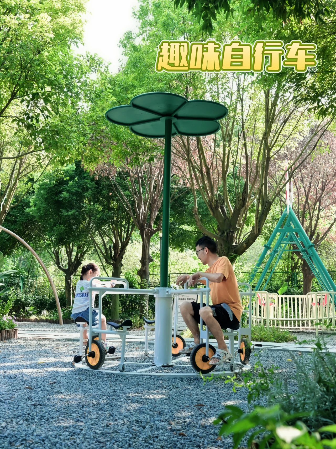 所有游乐设施都在树荫下,天然防晒!