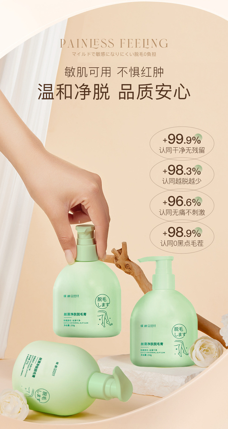 【敏肌可用❗️丝滑净肤脱毛膏250g】脱毛更抑毛,秀出光滑肌,轻柔便携不留黑点!男女通用脱毛腋毛手毛腿毛温和无痛脱毛慕斯