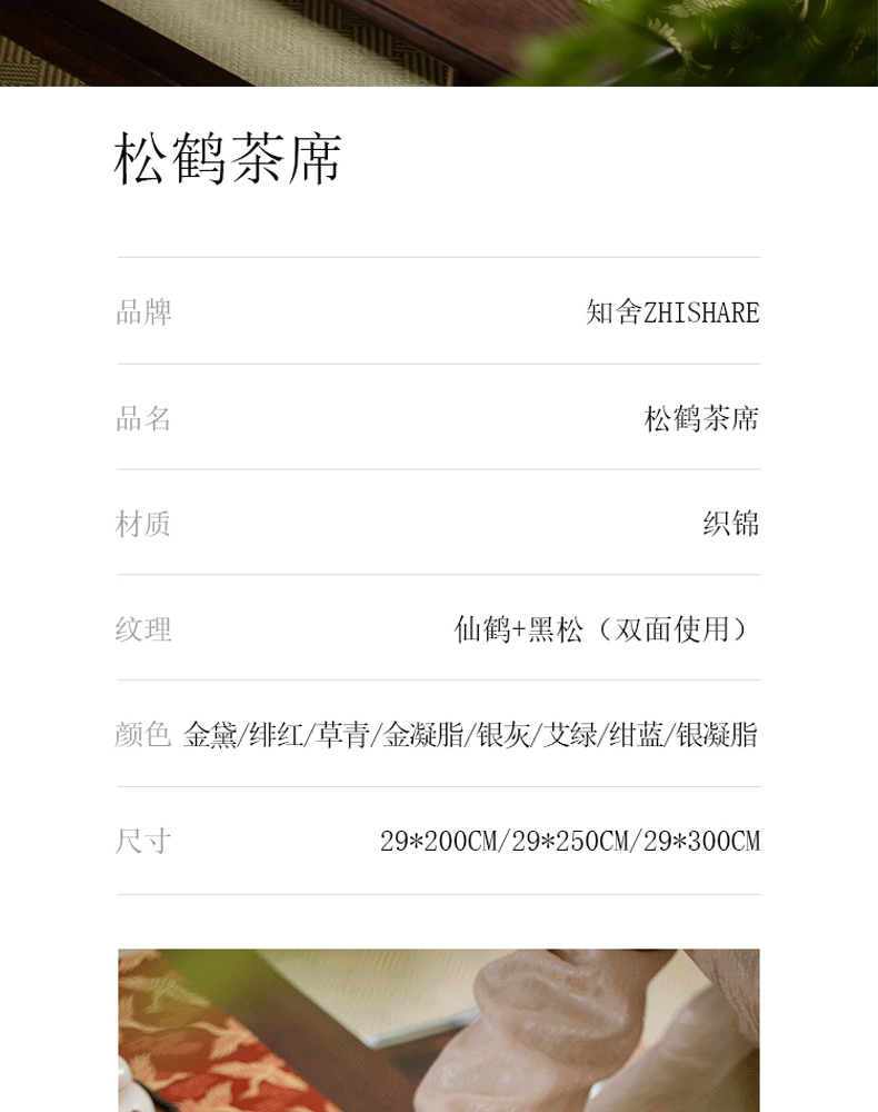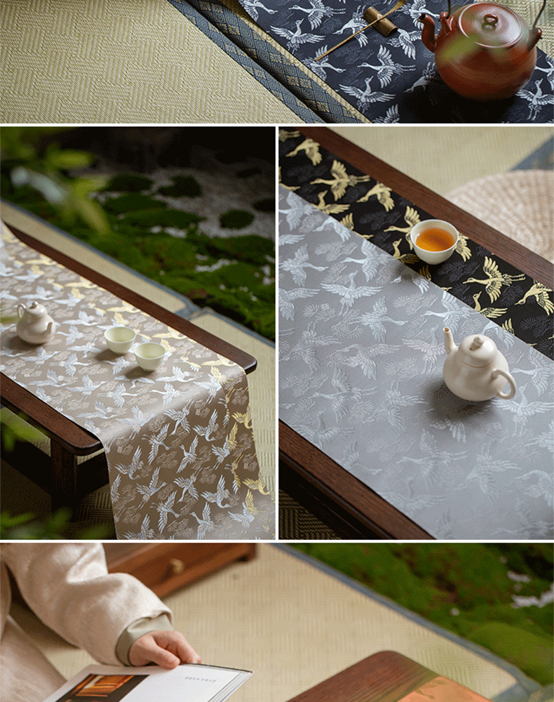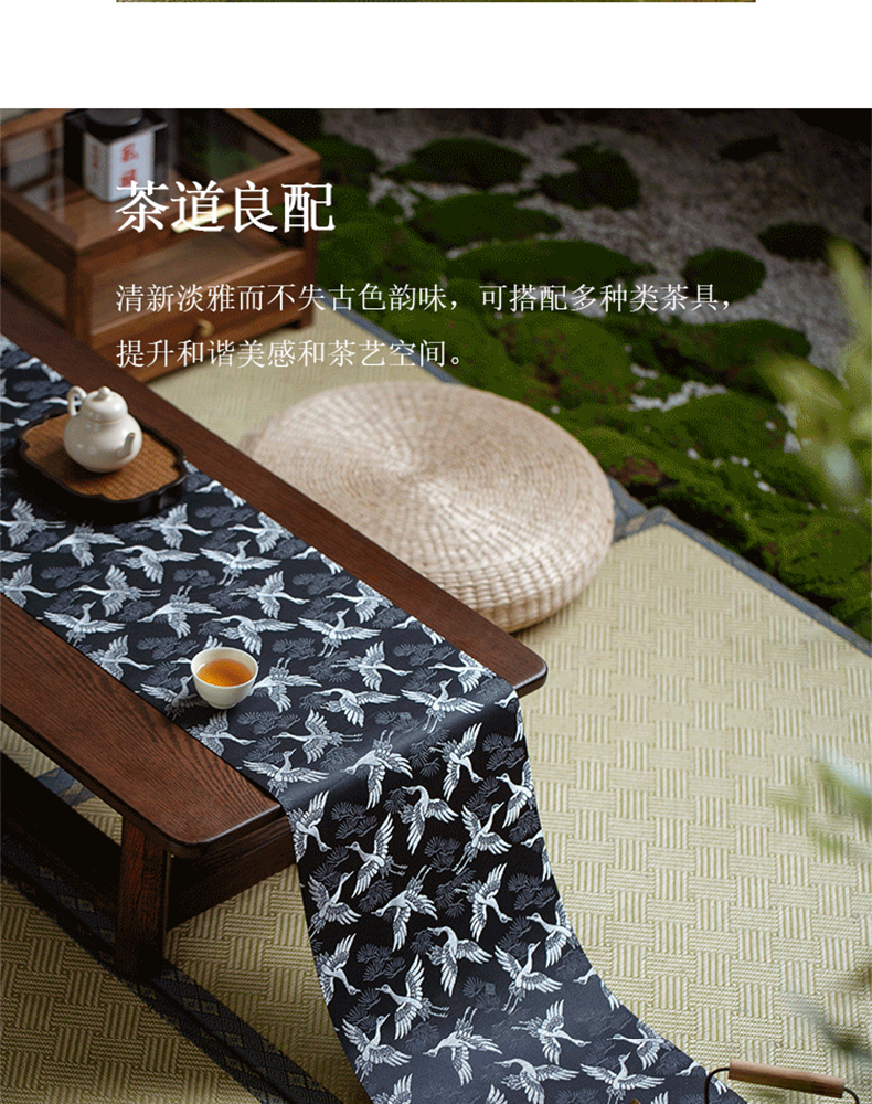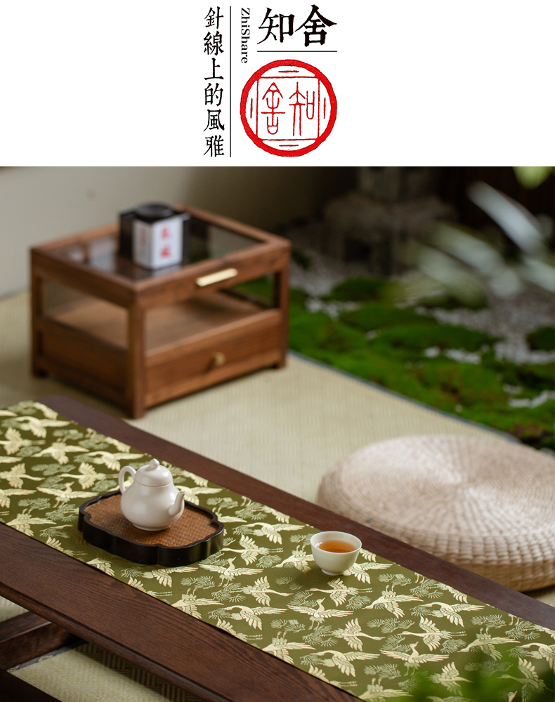 永利汇松鹤茶席多色织锦提花工艺双面中式传统禅意百搭桌旗知舍