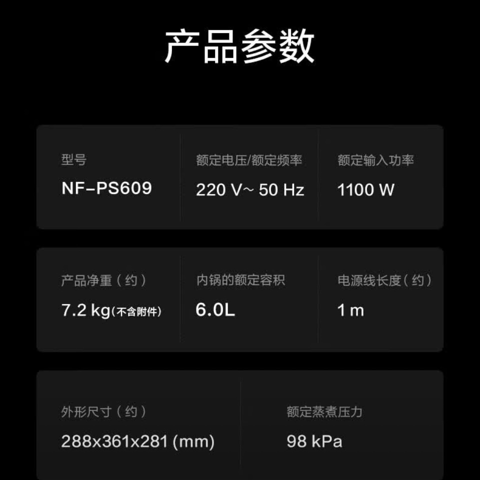 【云粉节】10楼松下多功能电压力锅三段压力备长炭内胆6升无水料理大容量电饭煲NF-PS609 吊牌价1999元 活动价1299元