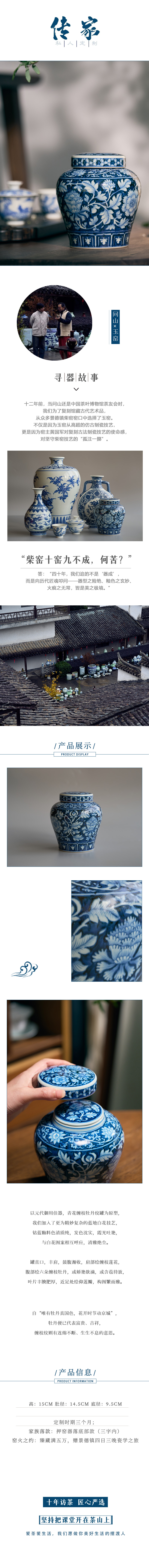 守艺 · 明青花蓝底缠枝牡丹纹盖罐 柴窑 高15cm 肚径14.5cm 底径9.5cm