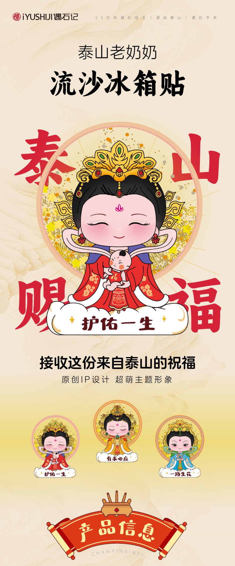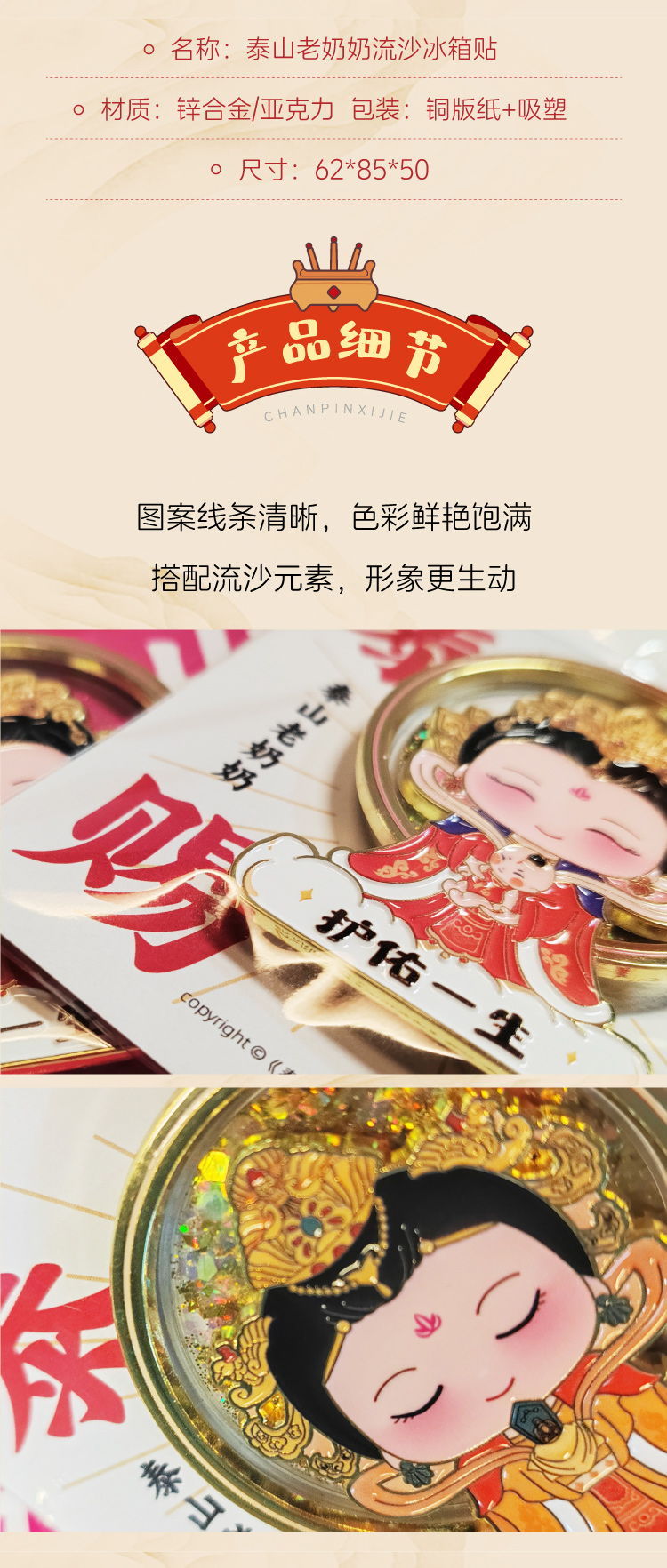遇石记泰山文创碧霞元君老奶奶流沙磁吸冰箱贴