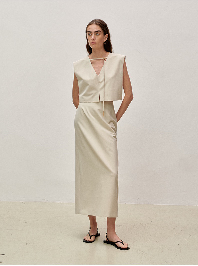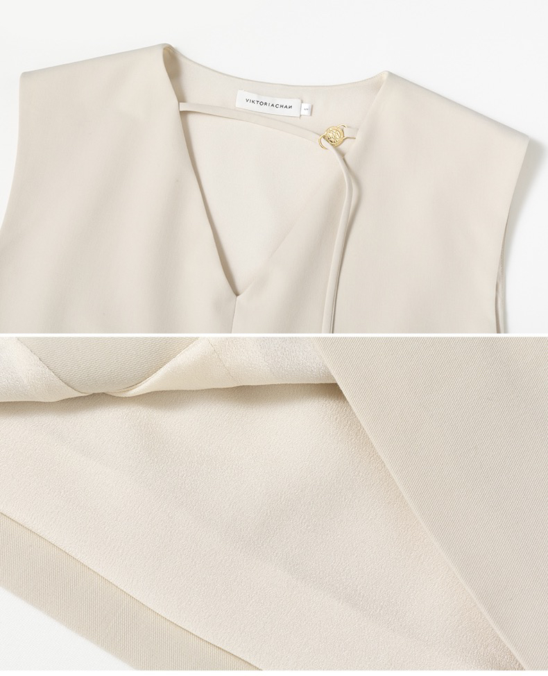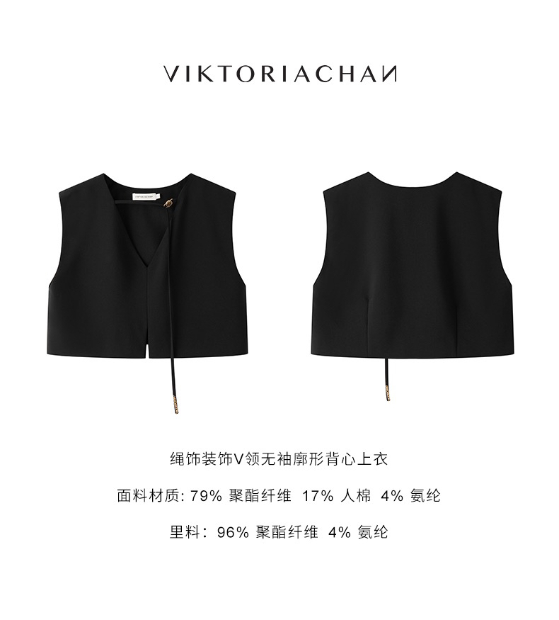 Viktoria Chan | SS23037 Tine V neck top [ 短背心 浅卡其 / 黑 ]