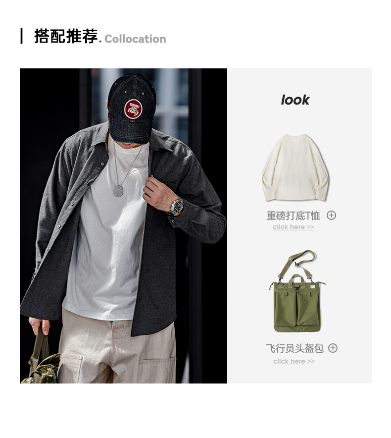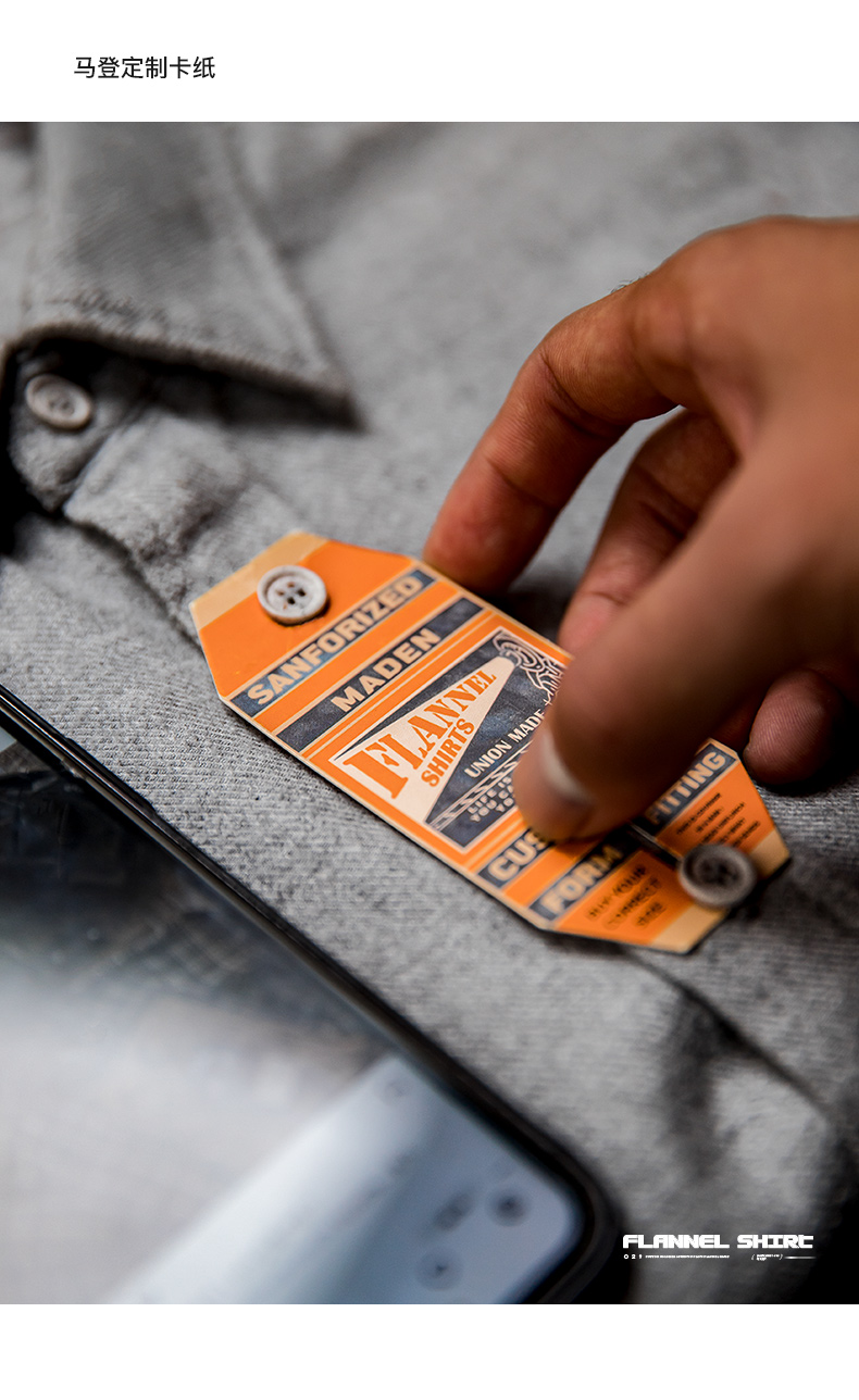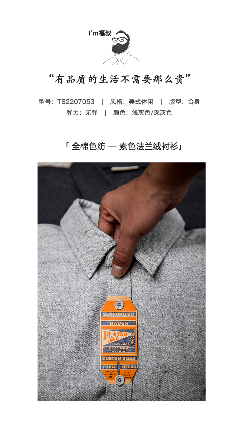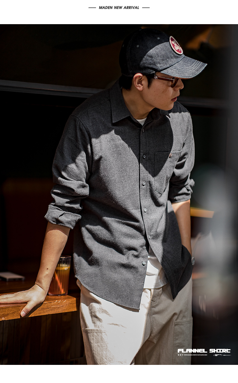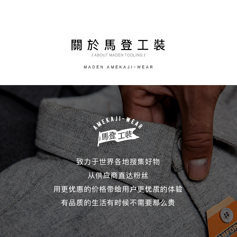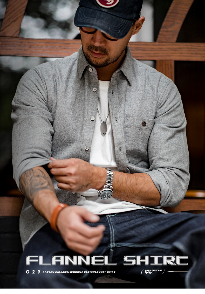 马登工装 美式休闲法兰绒全棉衬衫灰色商务通勤磨毛长袖衬衣男春