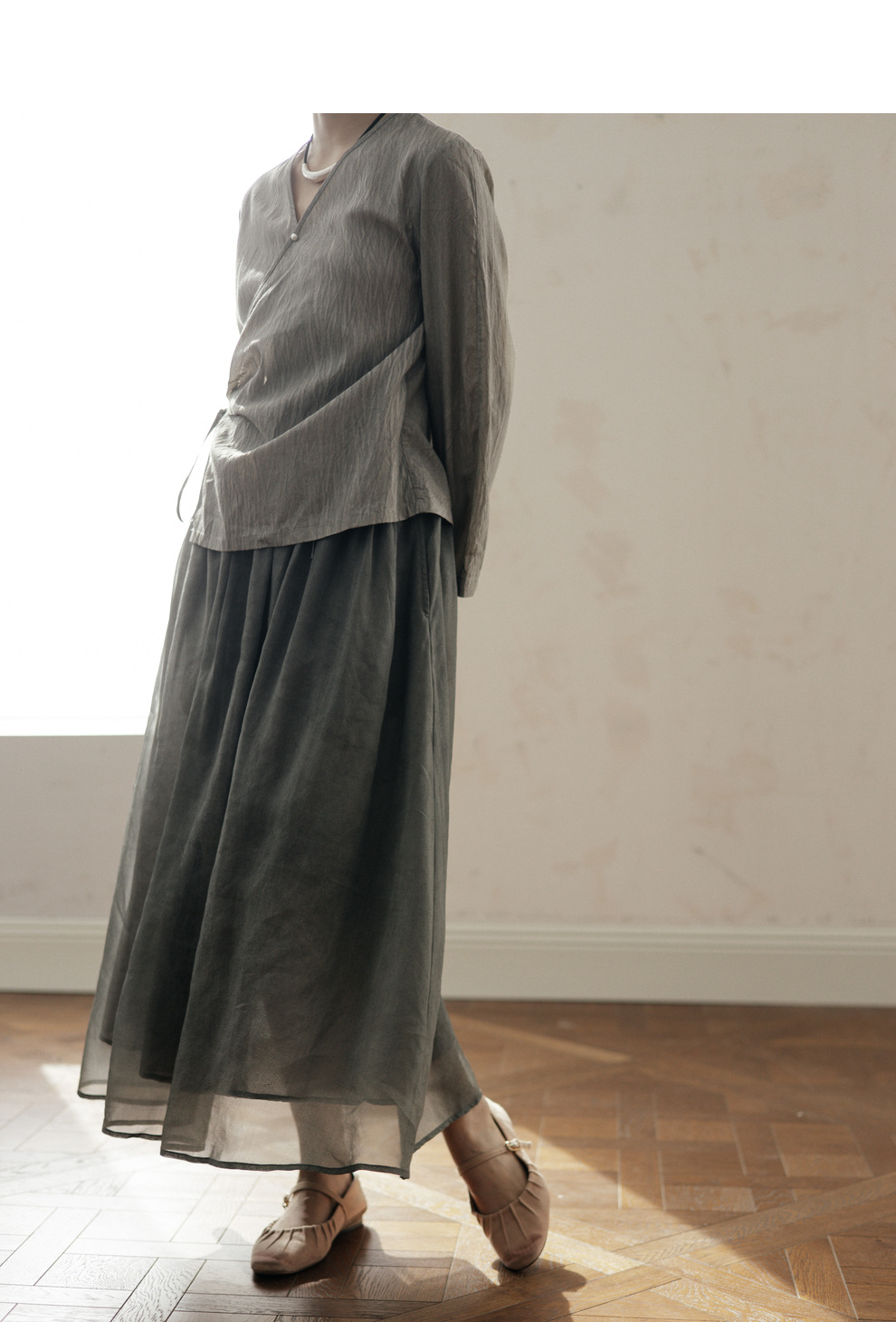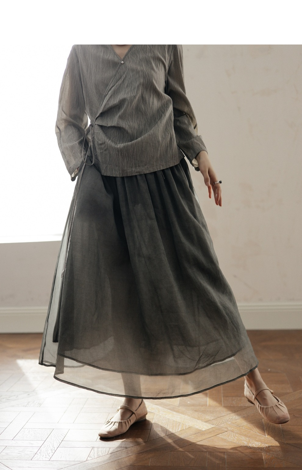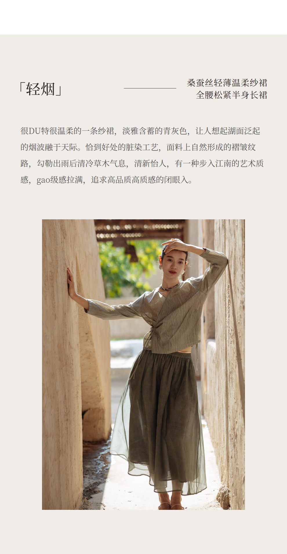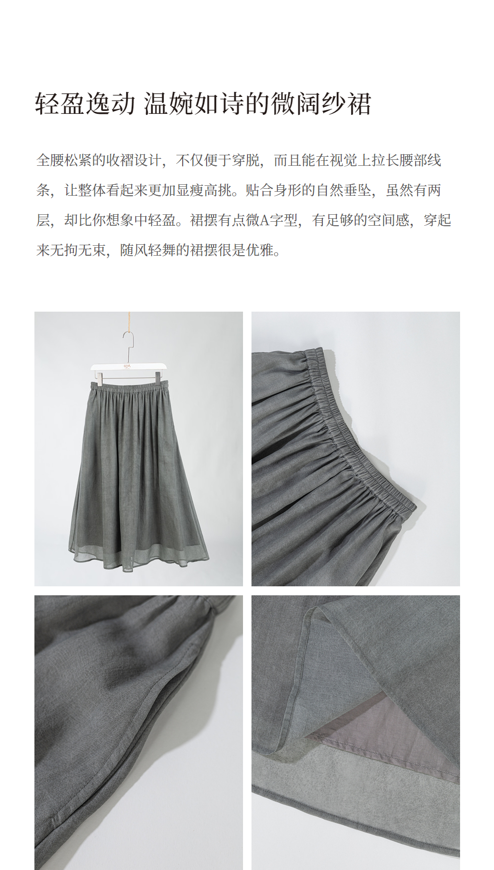 绽放458朵【黑白灰系列·轻烟】桑蚕丝轻薄纱裙全腰松紧半身长裙
