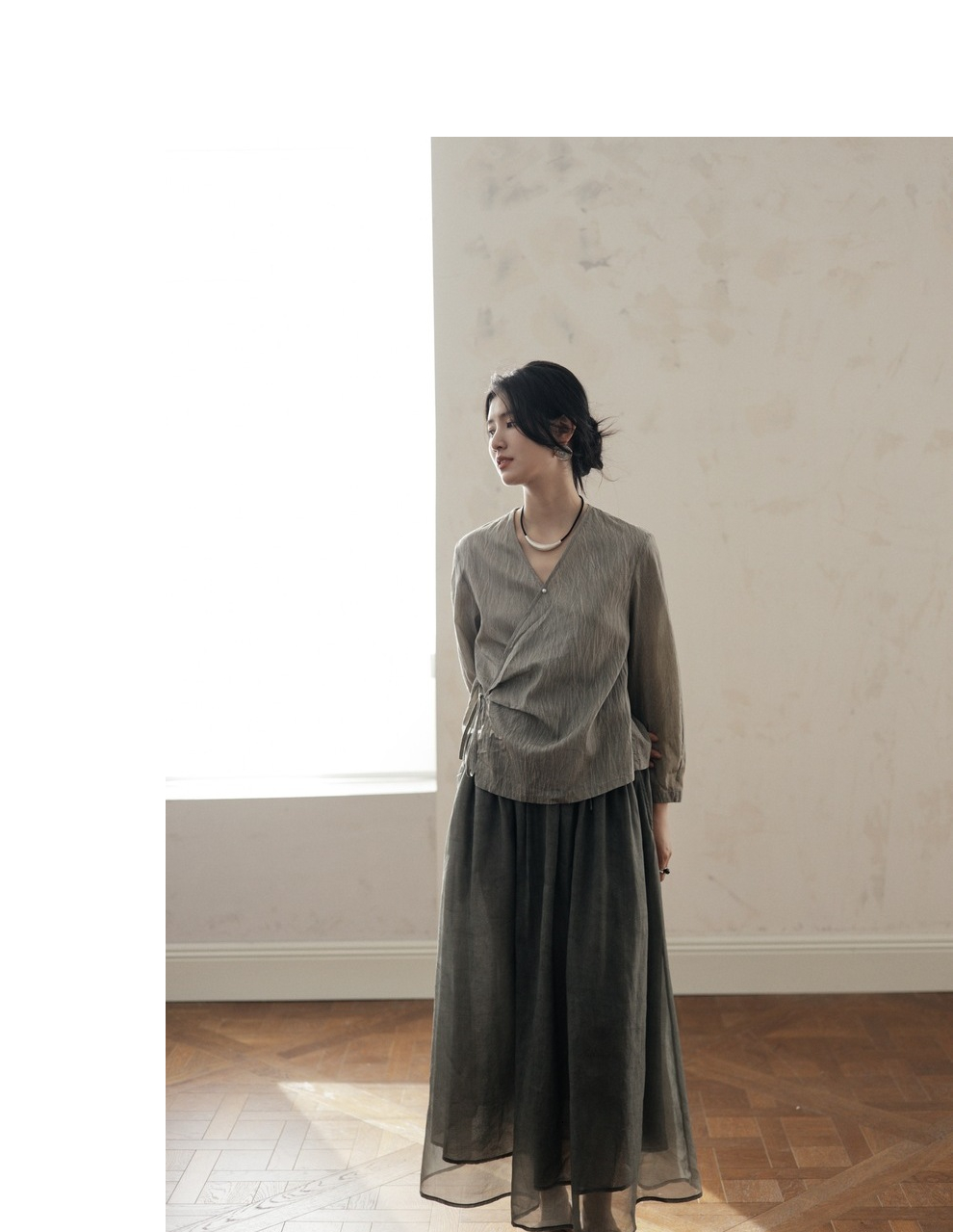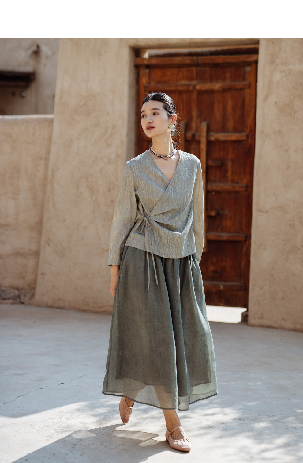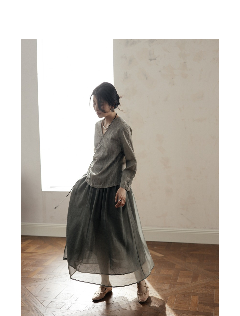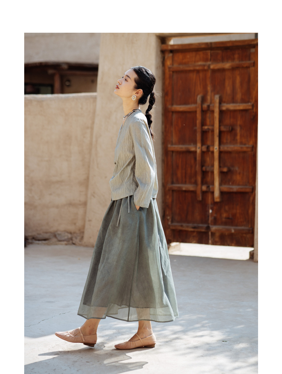 绽放458朵【黑白灰系列·轻烟】桑蚕丝轻薄纱裙全腰松紧半身长裙