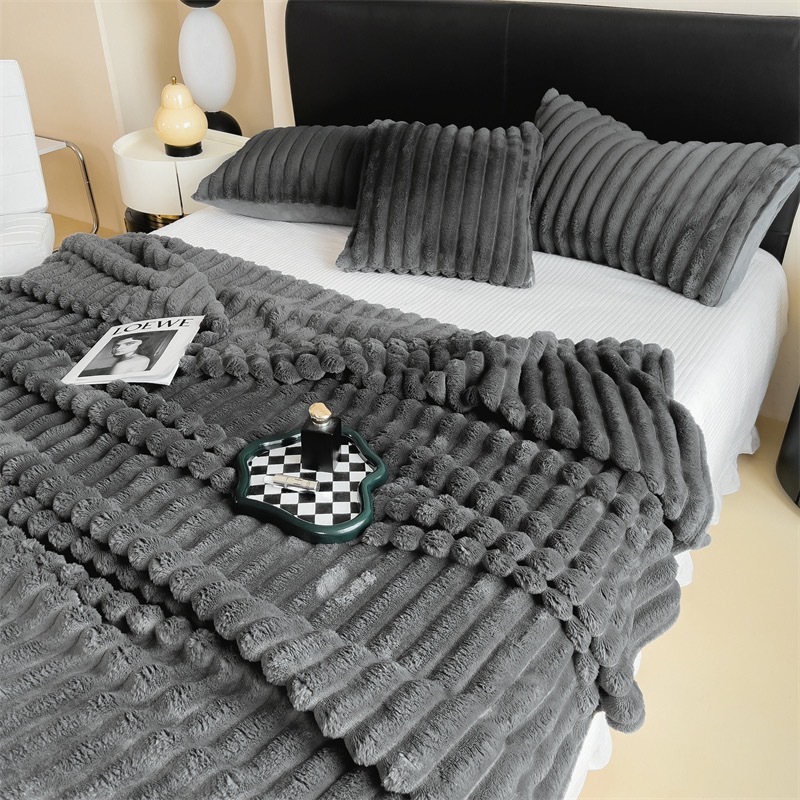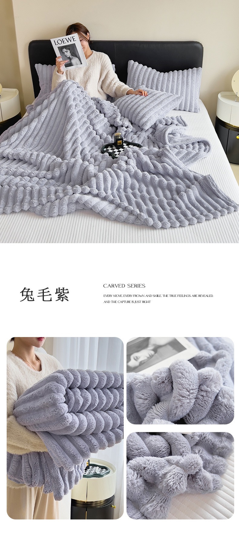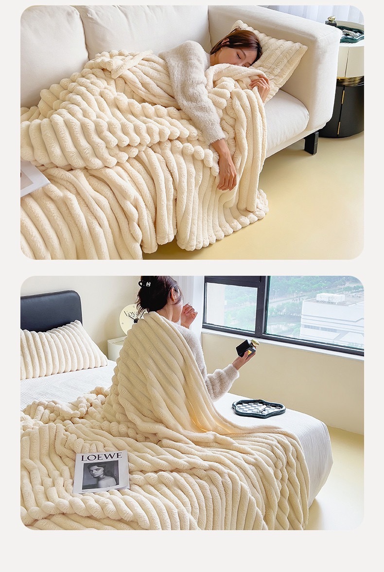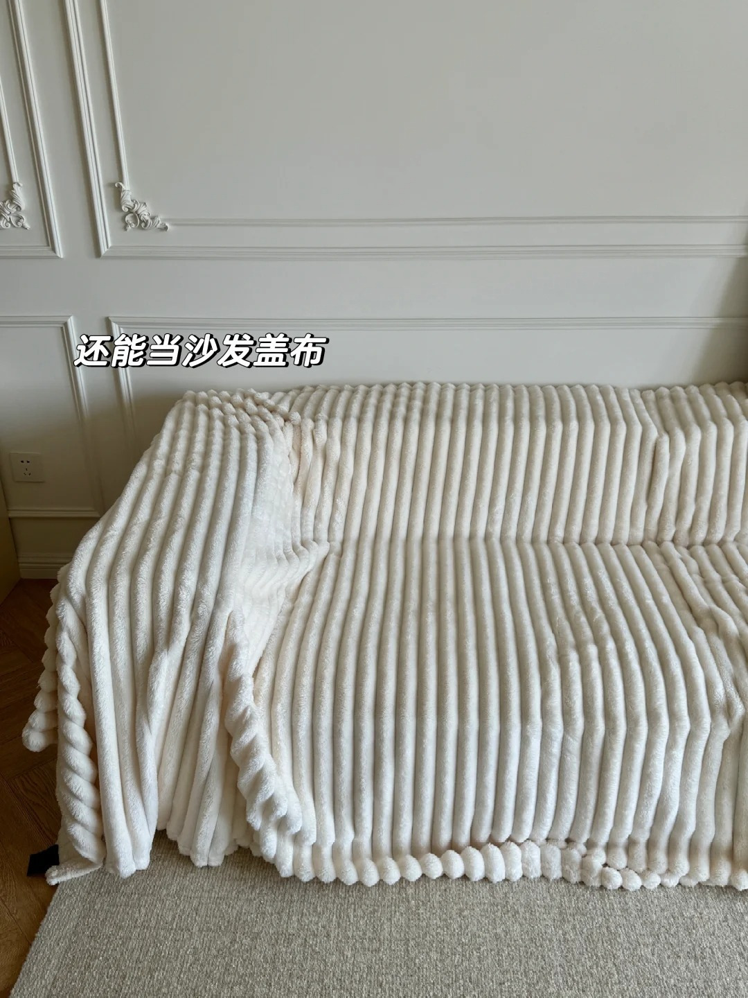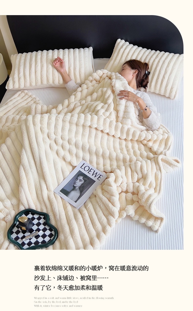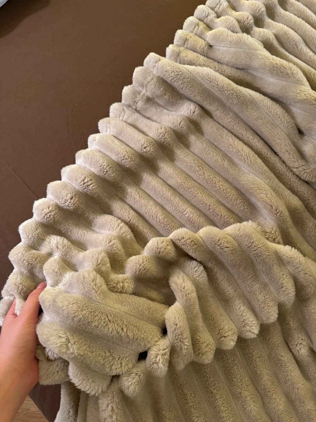 【双面立体绒条毛毯】南通实地湖源案颜值巨高的 仿兔毛牛奶绒面料,柔软紧密触感顺滑实用耐用,不掉毛不起球,无静电可机洗采用先进技术,能够一秒发热,一秒即暖 一毯多用,当午休毯、沙发毯、床上盖毯