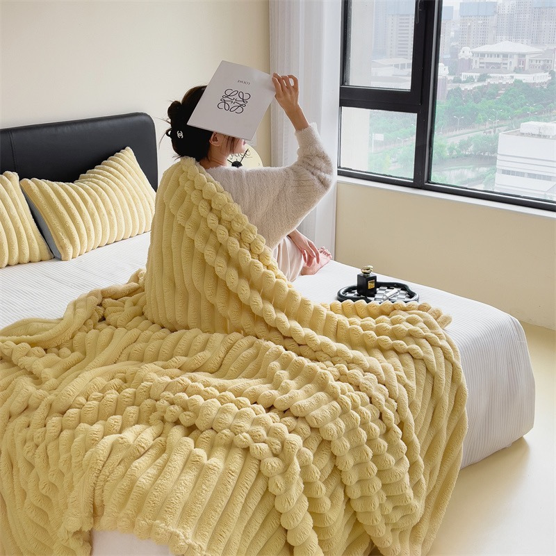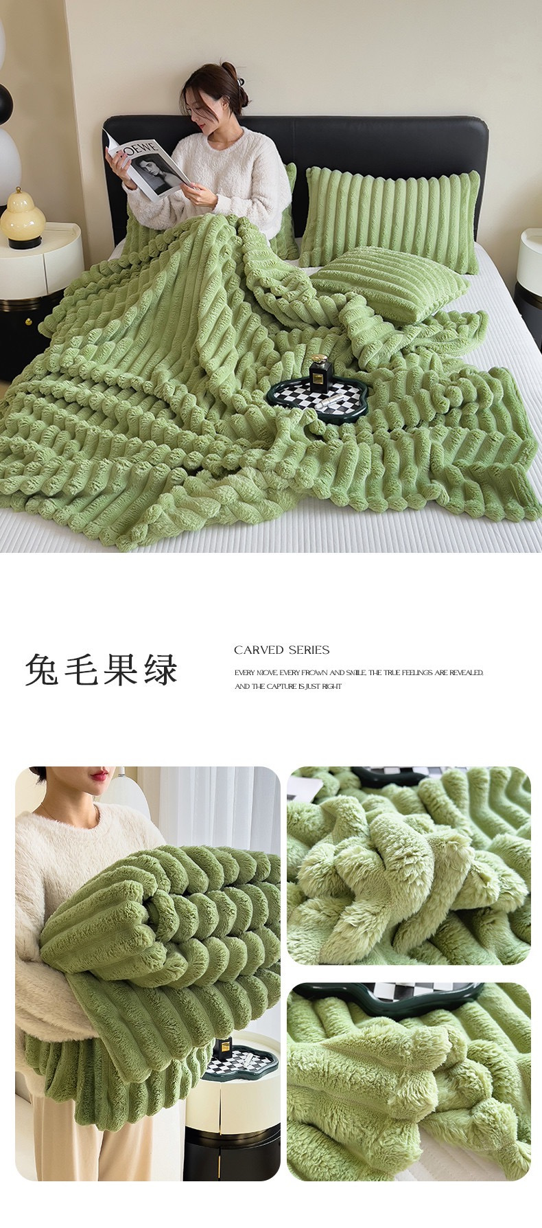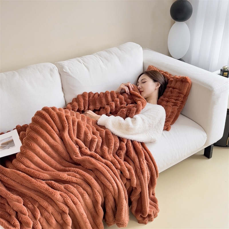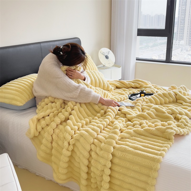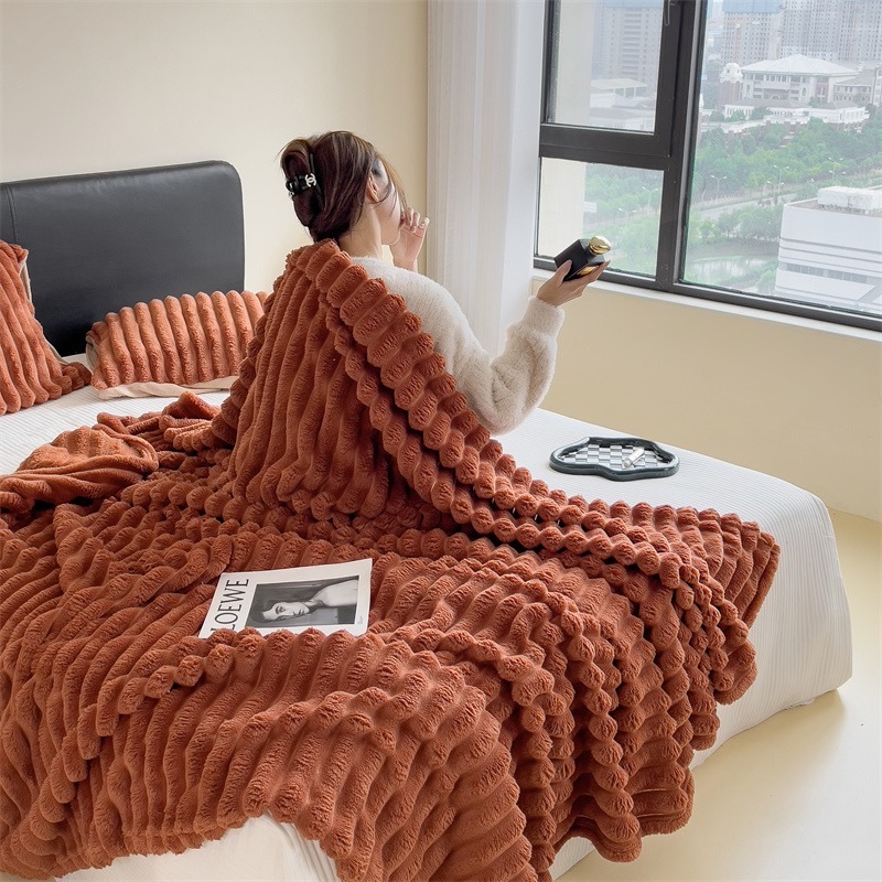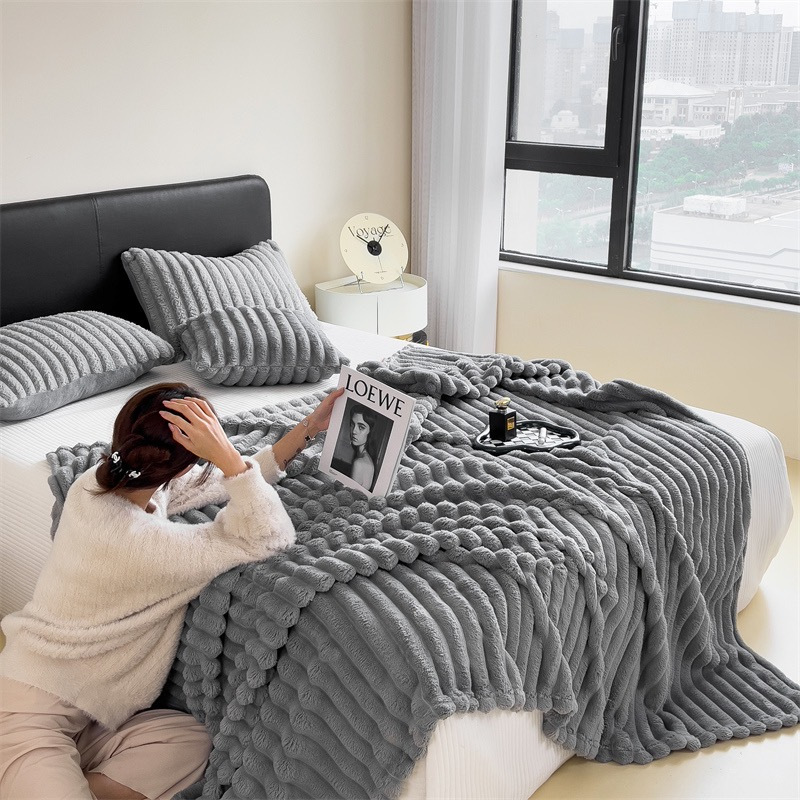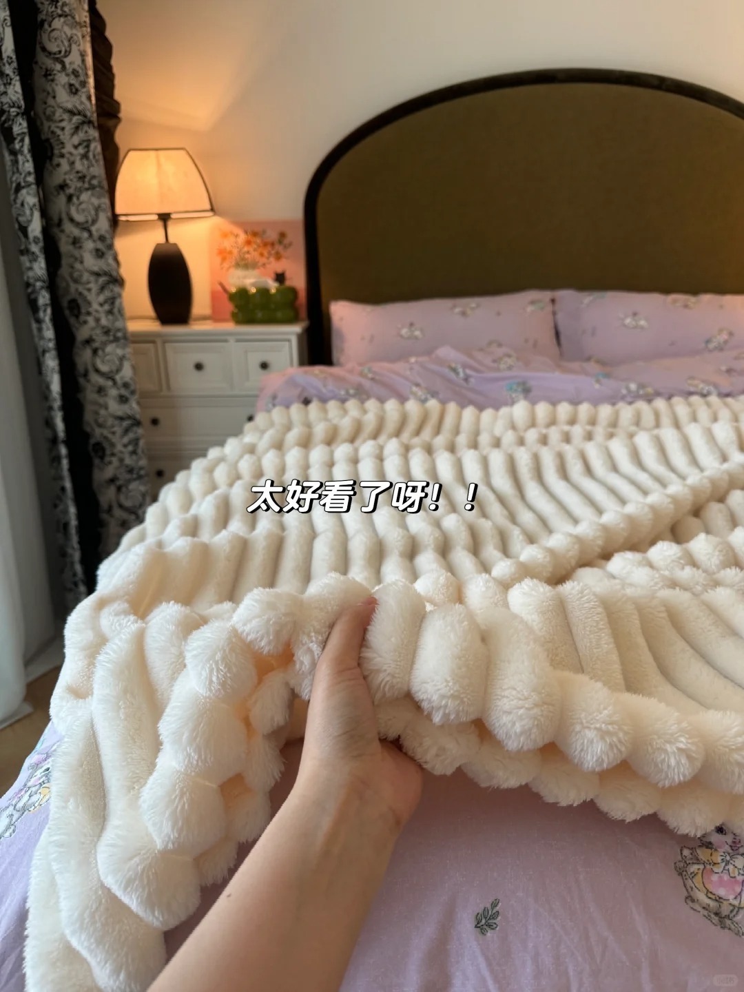 【双面立体绒条毛毯】南通实地湖源案颜值巨高的 仿兔毛牛奶绒面料,柔软紧密触感顺滑实用耐用,不掉毛不起球,无静电可机洗采用先进技术,能够一秒发热,一秒即暖 一毯多用,当午休毯、沙发毯、床上盖毯