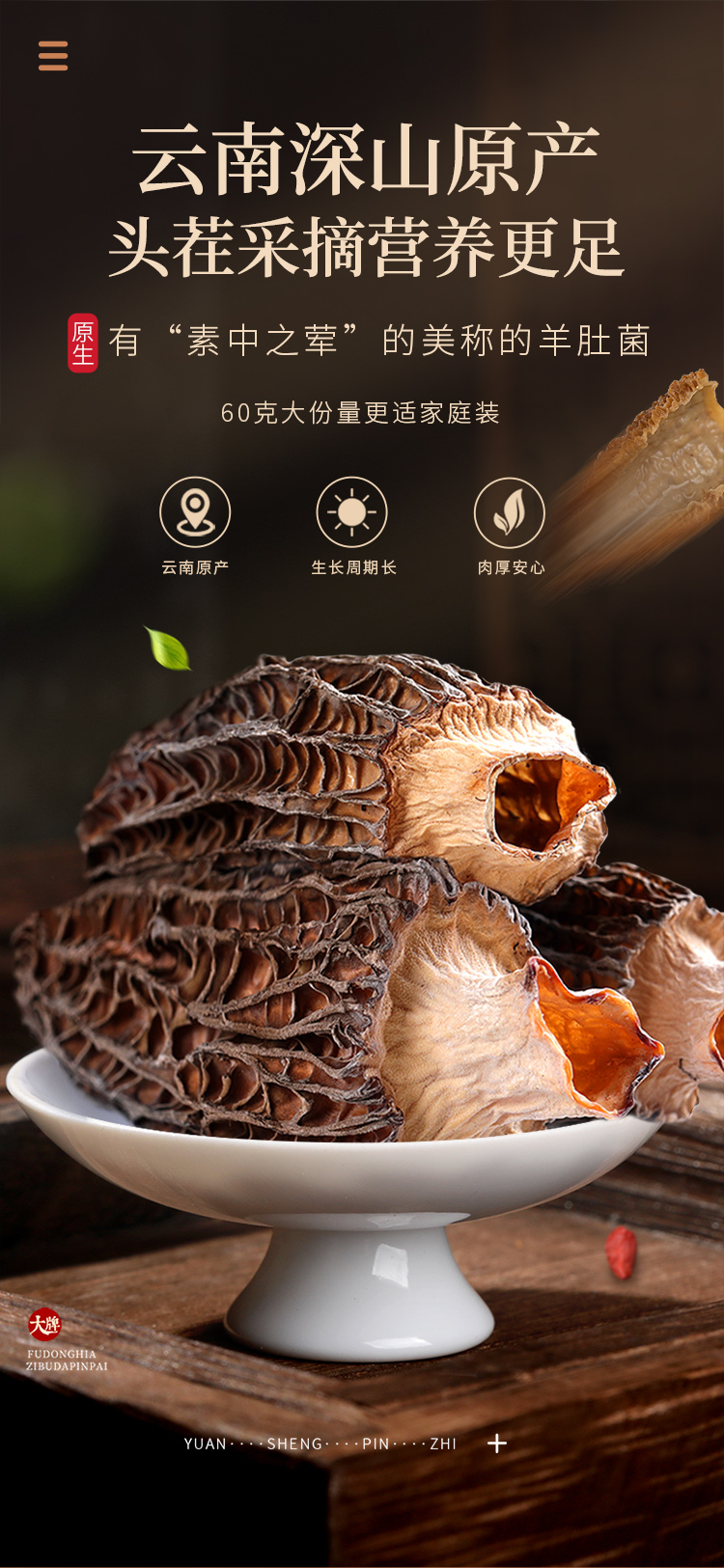 福东海 羊肚菌60g 精选云南特产去柄羊肚菌山珍干货