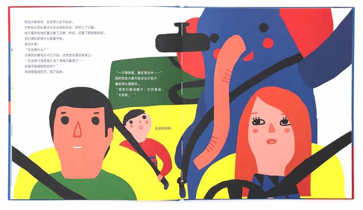 这是一个与心中的忧伤大象相处的故事,叙事流丽,构图清爽别致。小朋友在故事里,不逃避,不夸张,走出情感创伤,学会了情绪管理和心理建设。