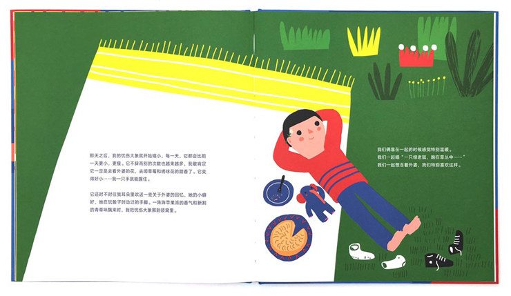 《我的忧伤像一头大象》由法国知名作家鲁米吉埃创作,插画家马托索绘制,讲述主人公在外婆去世后,想象和一头大象一同坐车、唱歌、读书和浇花,回忆外婆的点点滴滴。时间流逝,忧伤大象逐渐缩小,乃至一手可握。