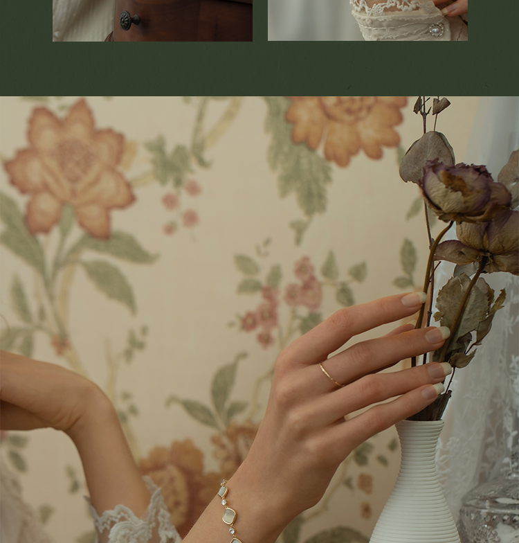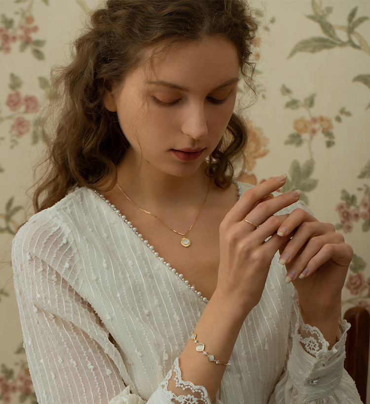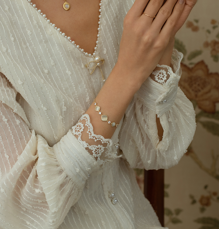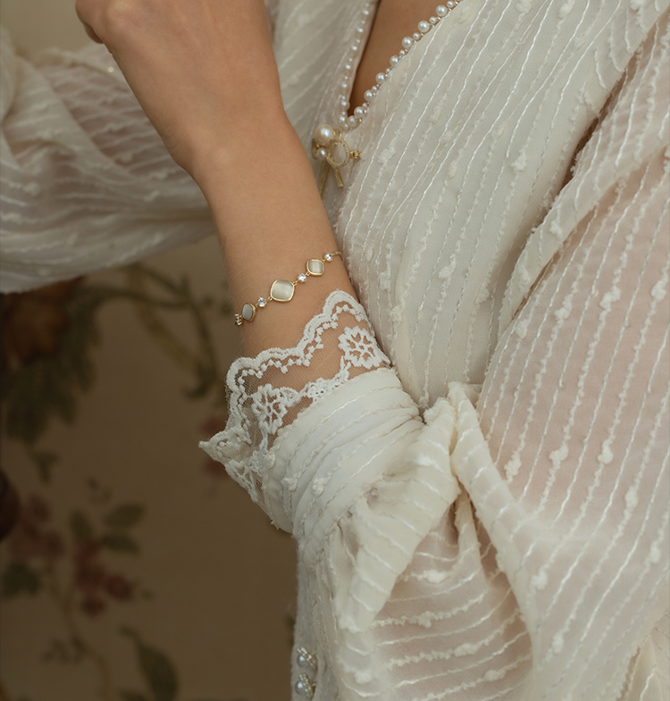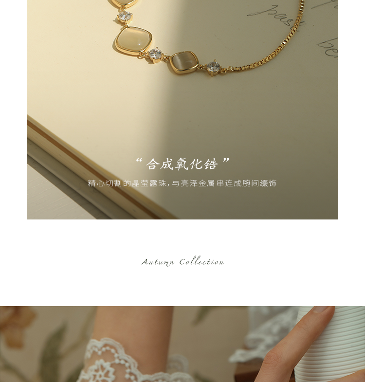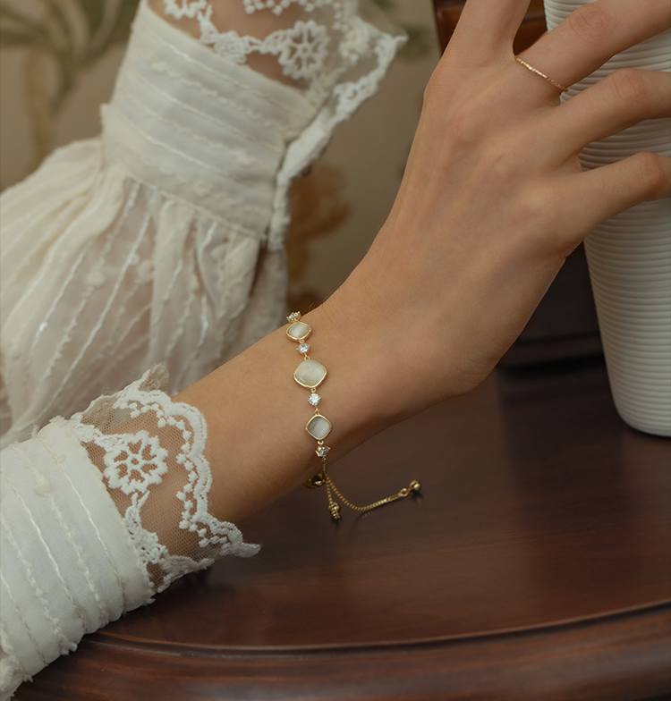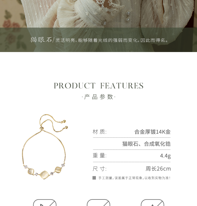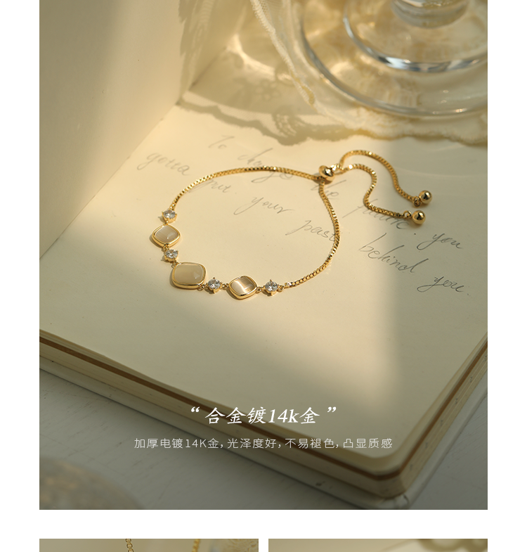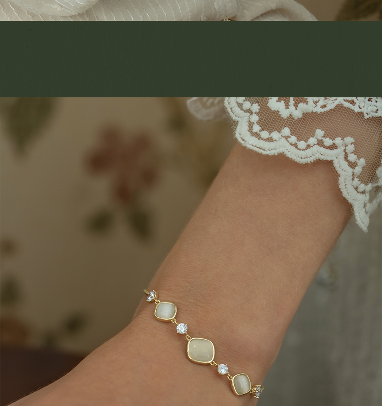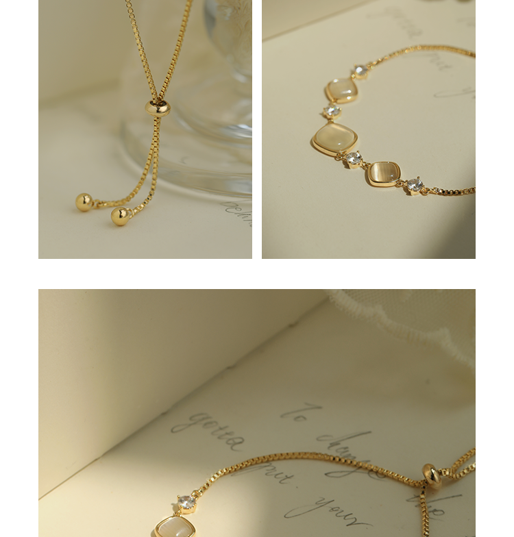 Oflye潮流饰品 猫眼石手链可调节抽拉式女高质感首饰轻奢小众设计精致闺蜜手饰品