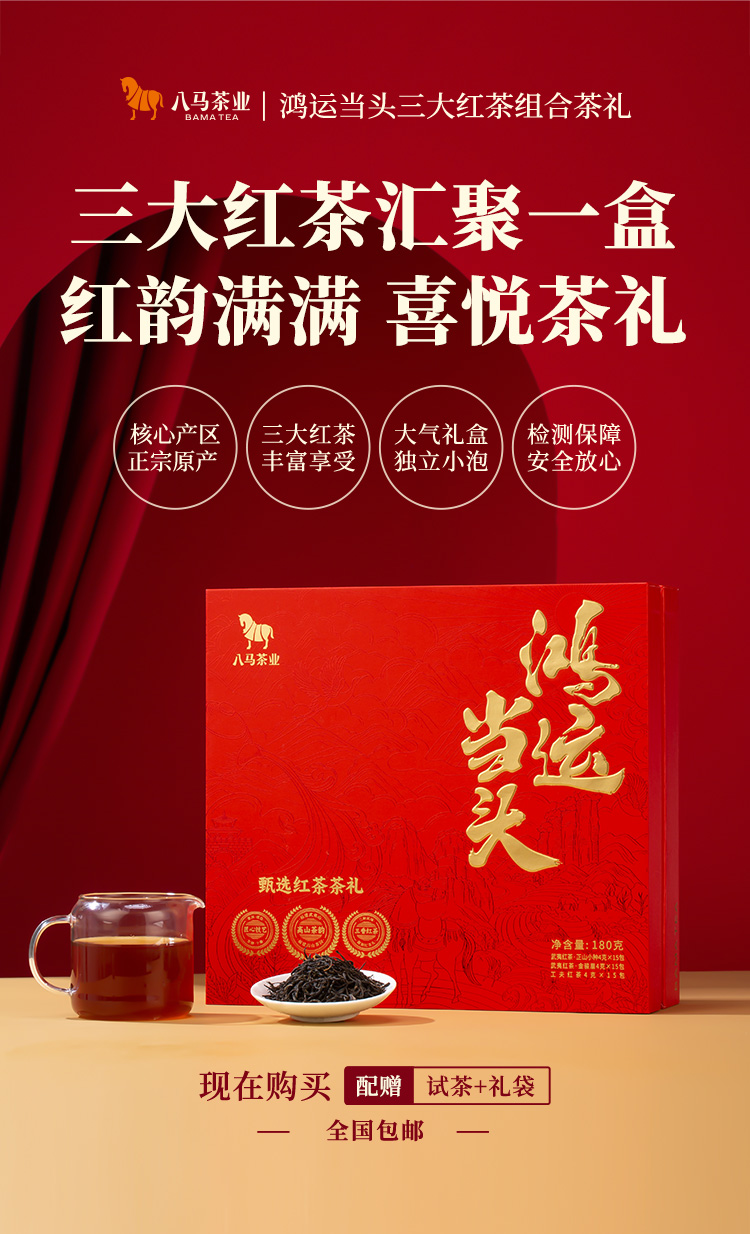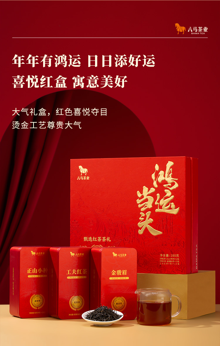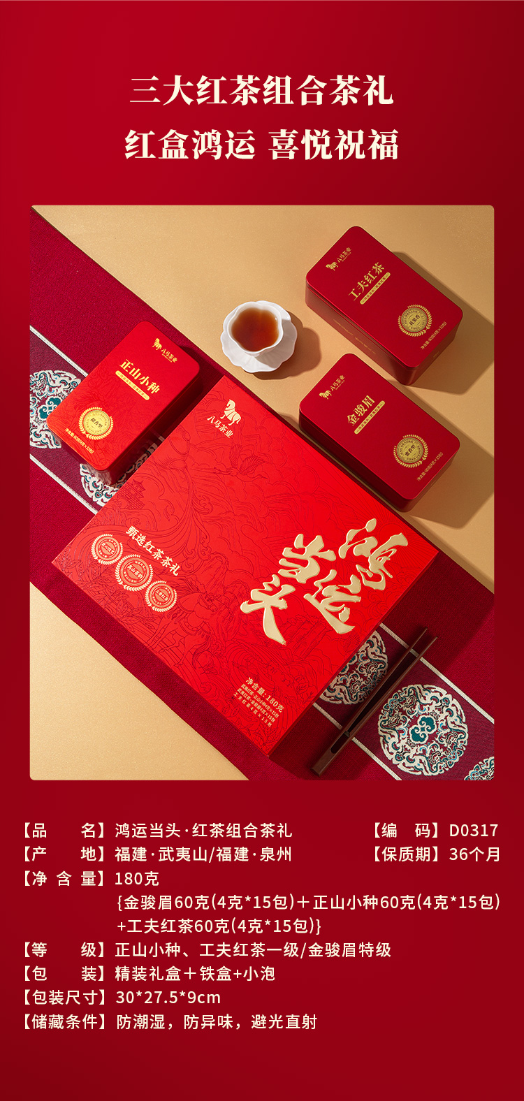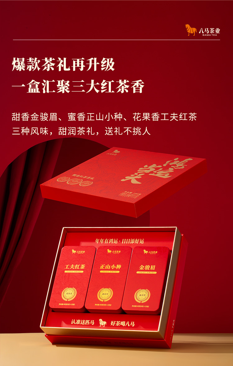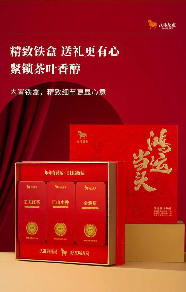 八马茶业|鸿运当头红茶组合装(金骏眉/正山小种/工夫红茶)180g