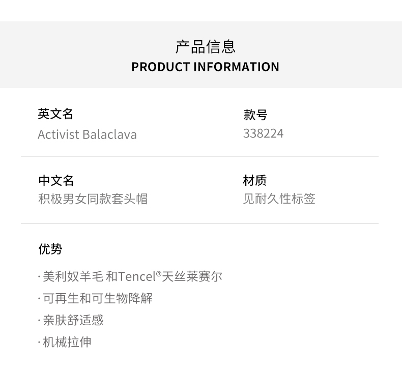 HOUDINI胡丁尼 Activist Balaclava 积极 套头帽338224
