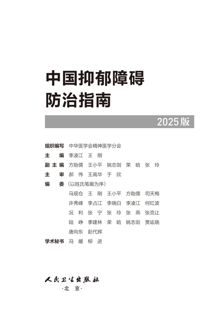书名:中国抑郁障碍防治指南(2025版)