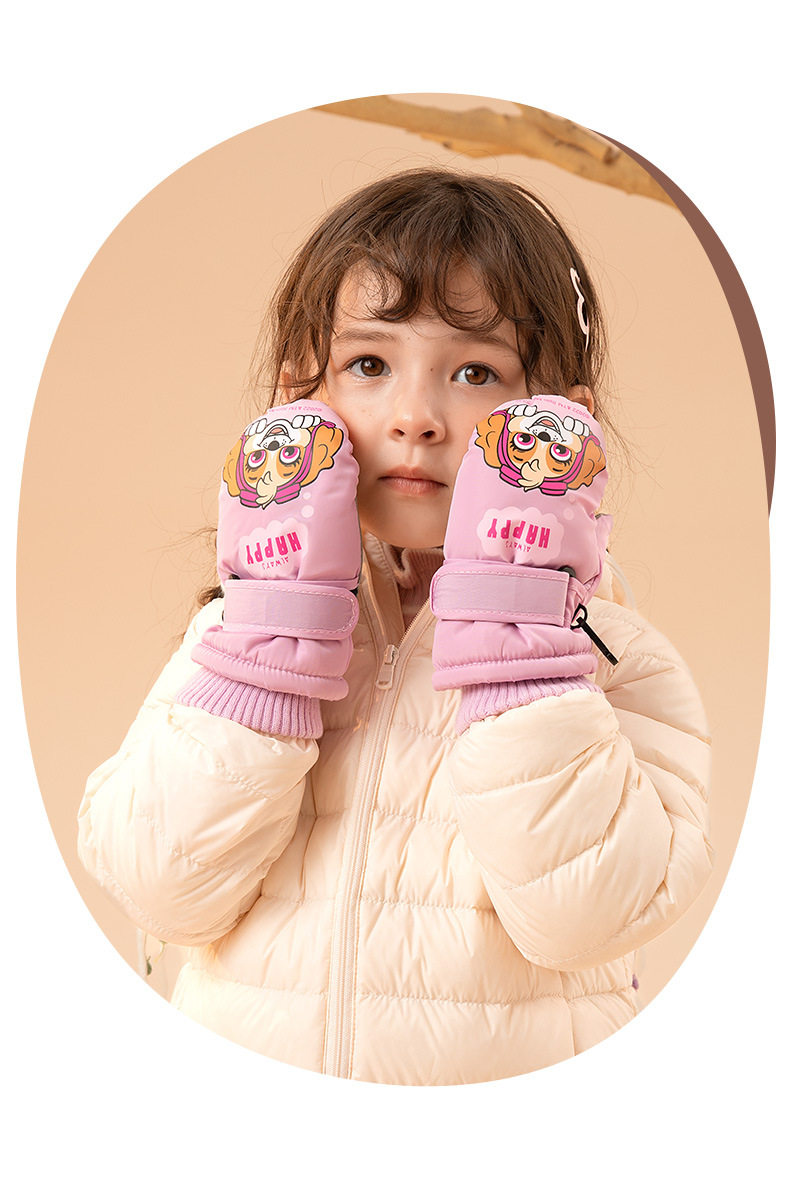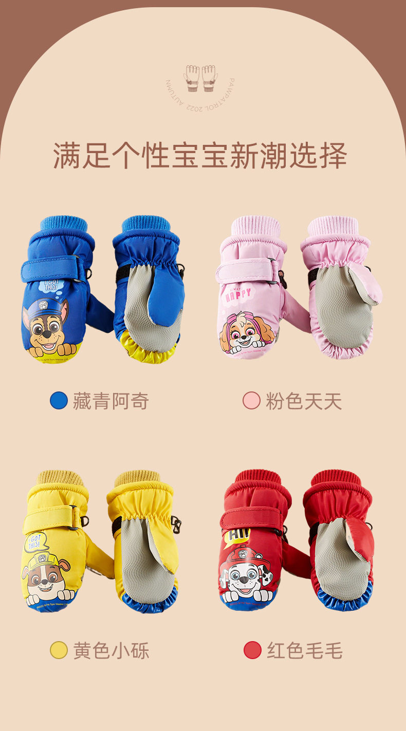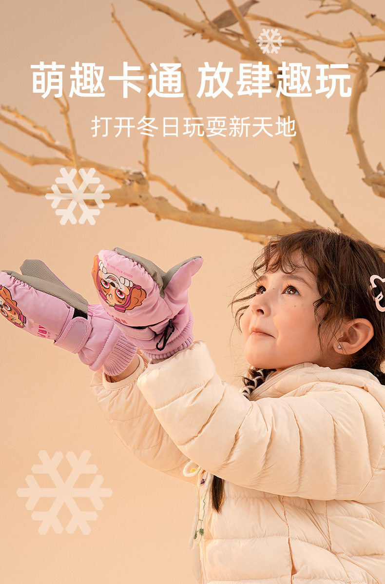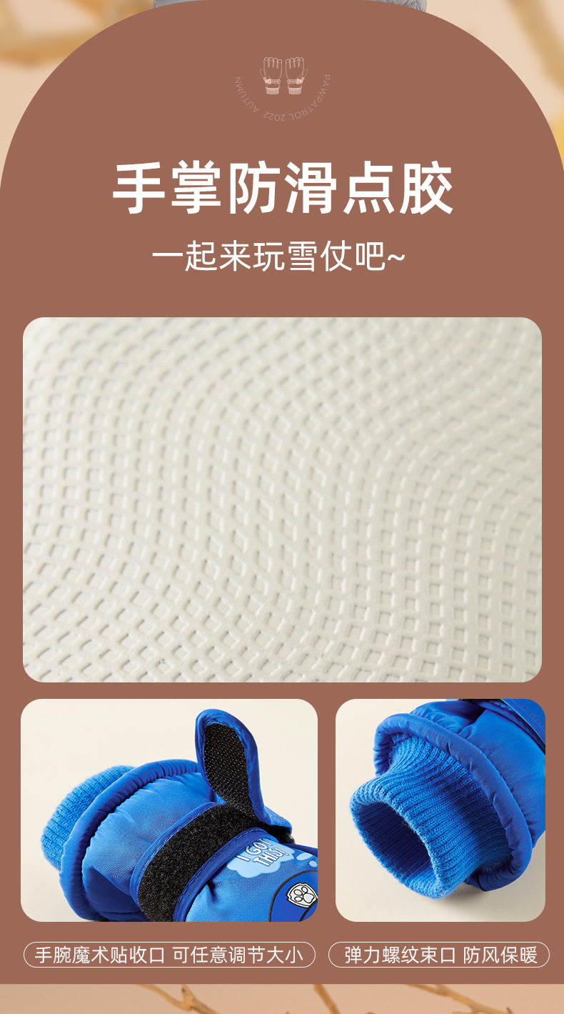 汪汪队儿童滑雪手套 男童防寒加绒保暖手套 女童玩雪可爱防水手套