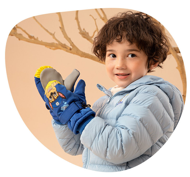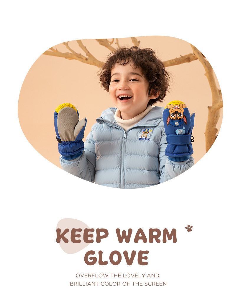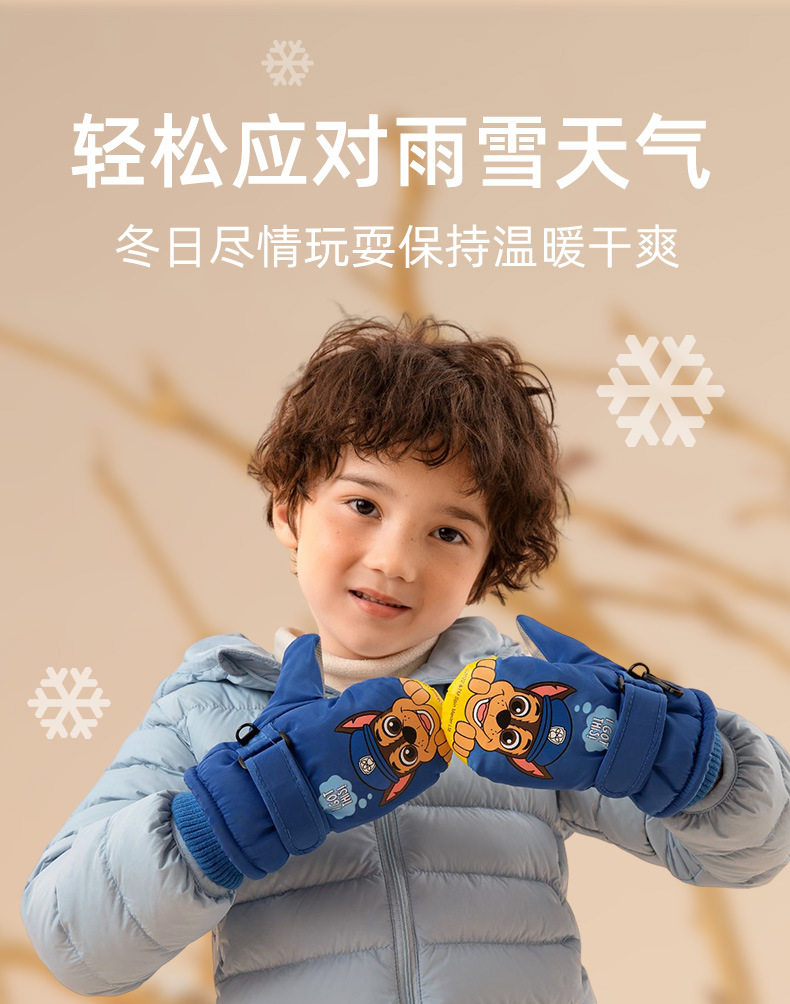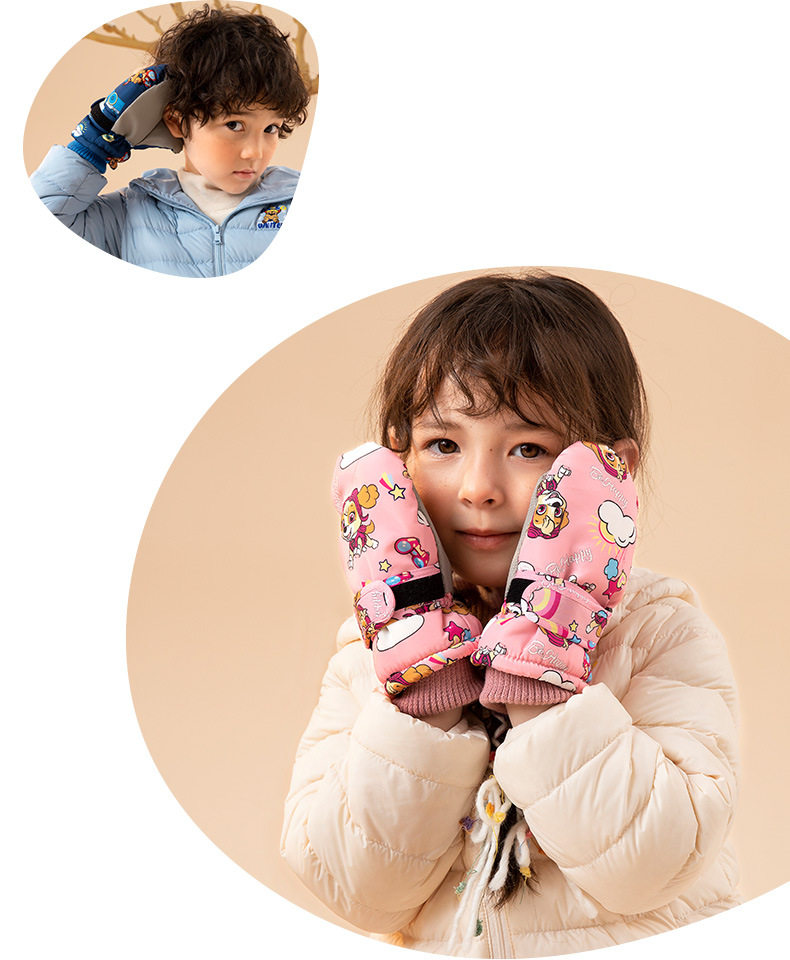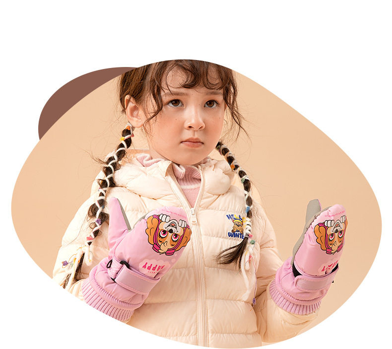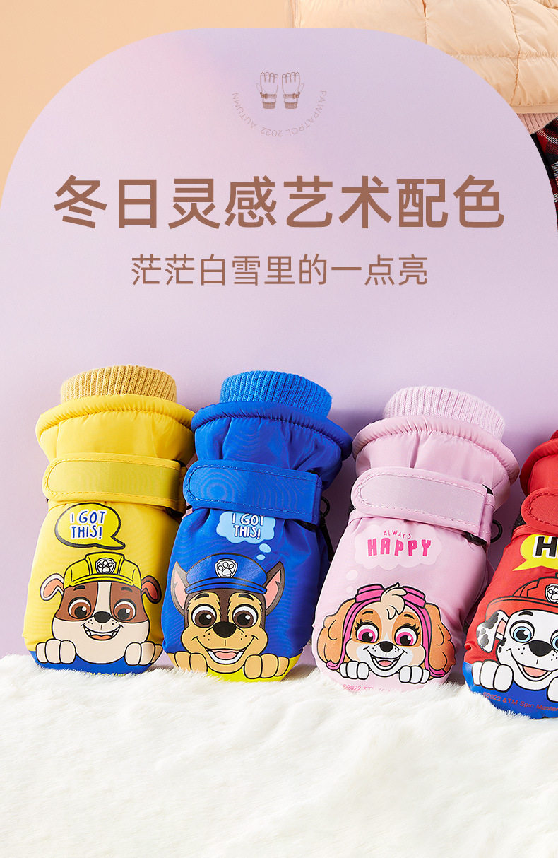 汪汪队儿童滑雪手套 男童防寒加绒保暖手套 女童玩雪可爱防水手套