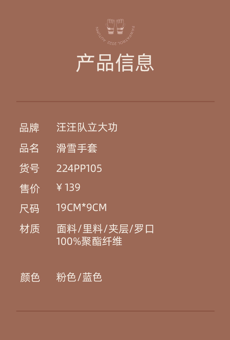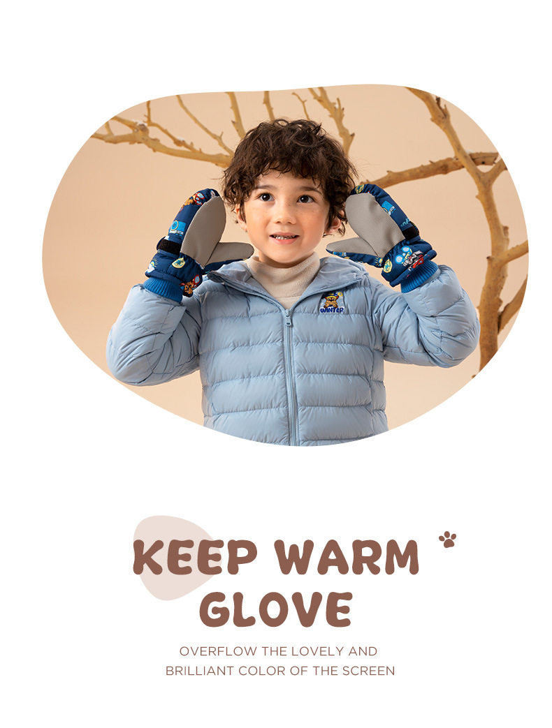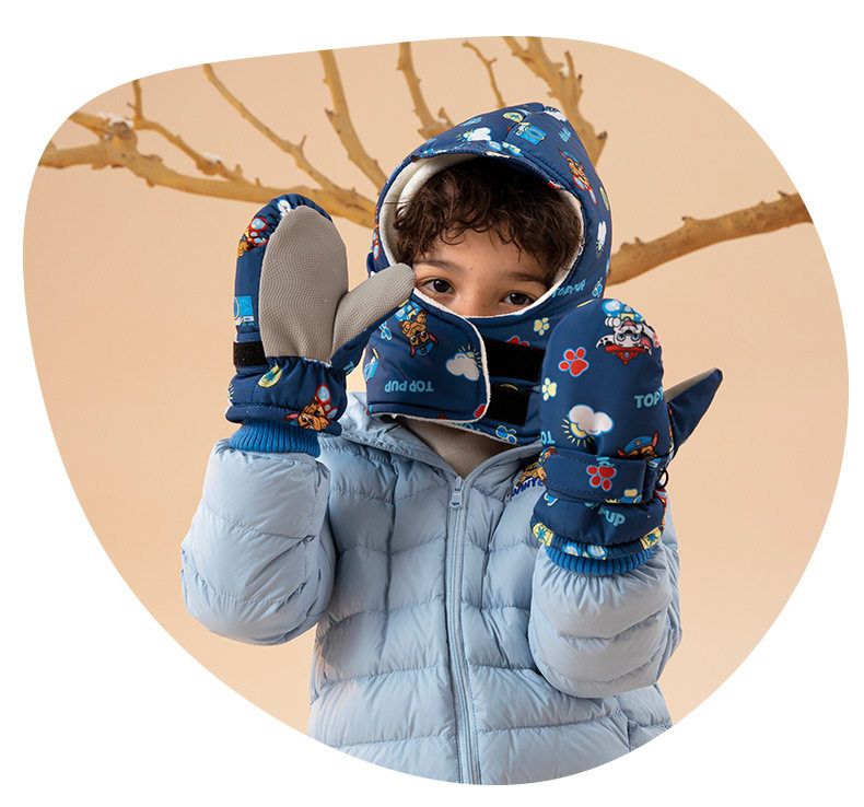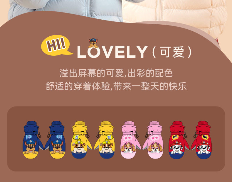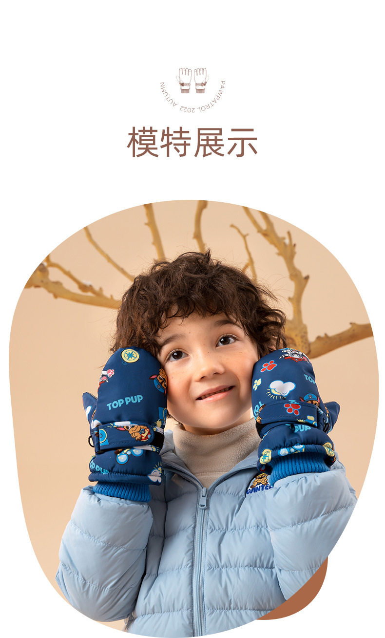 汪汪队儿童滑雪手套 男童防寒加绒保暖手套 女童玩雪可爱防水手套