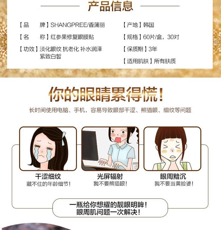 【新年专享】韩国香蒲丽红参果眼膜眼贴补水紧致60贴