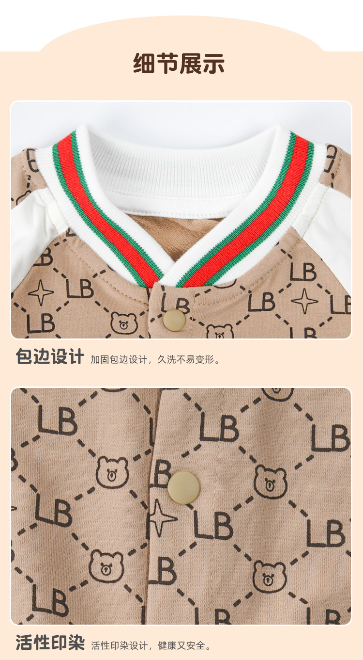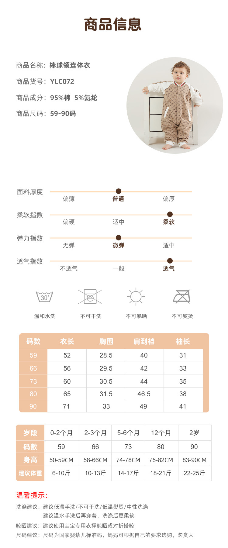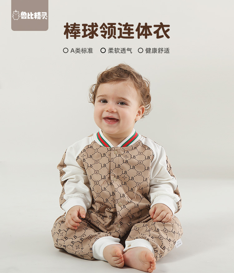 【宝宝棒球领连体衣】婴儿春秋款连体衣宝宝衣服长袖棒球领外出服抱衣新生儿哈衣外套