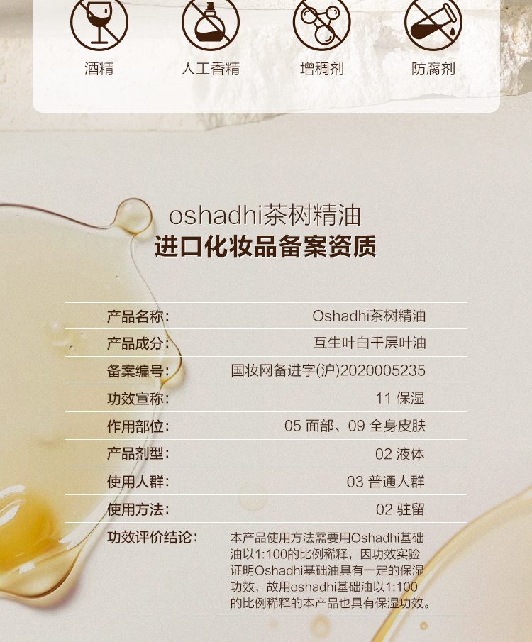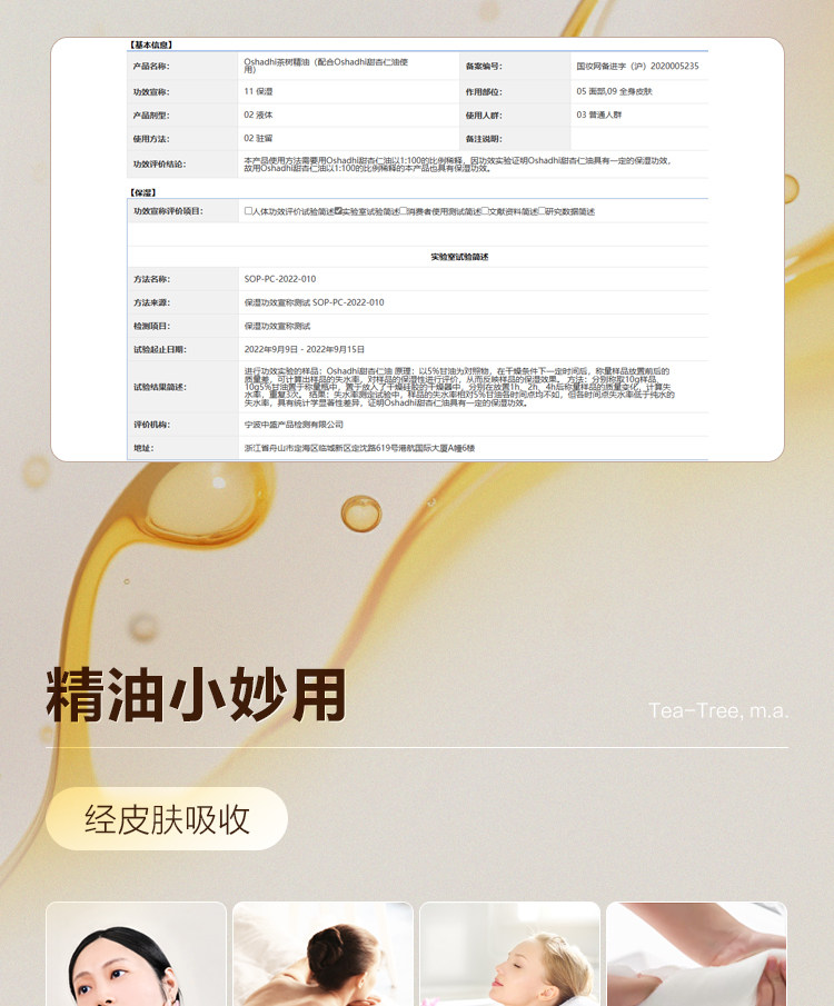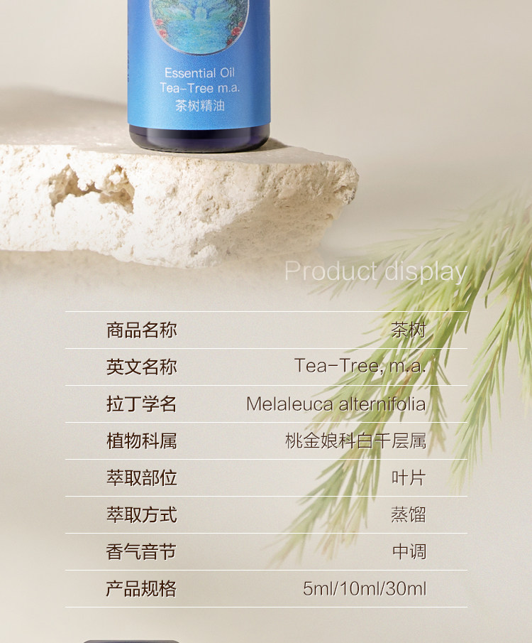 德国O家茶树精油单方精油 香薰精油 面部点涂 做按摩油