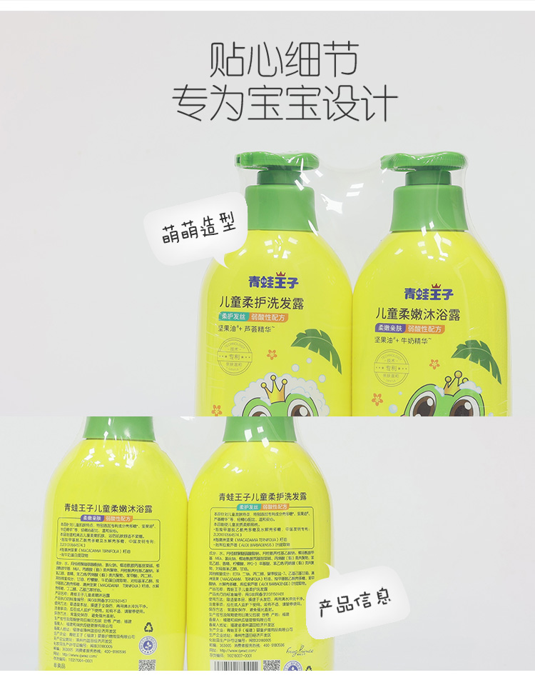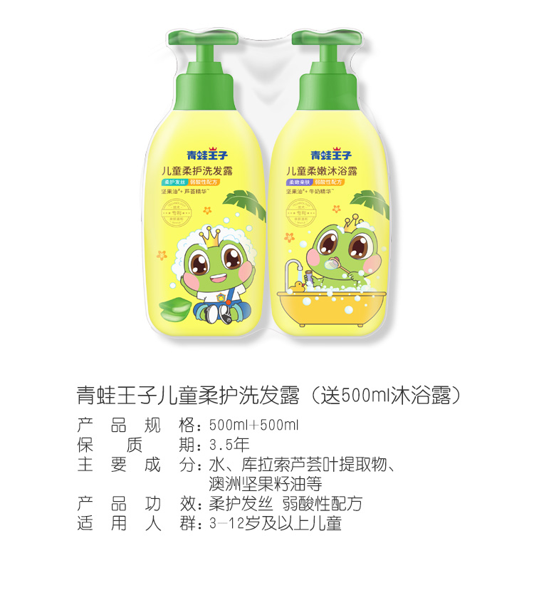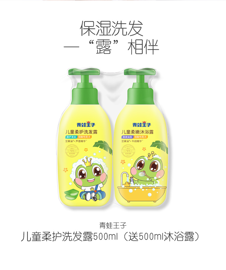 青蛙王子儿童柔护洗发露500ml+柔嫩沐浴露500ml