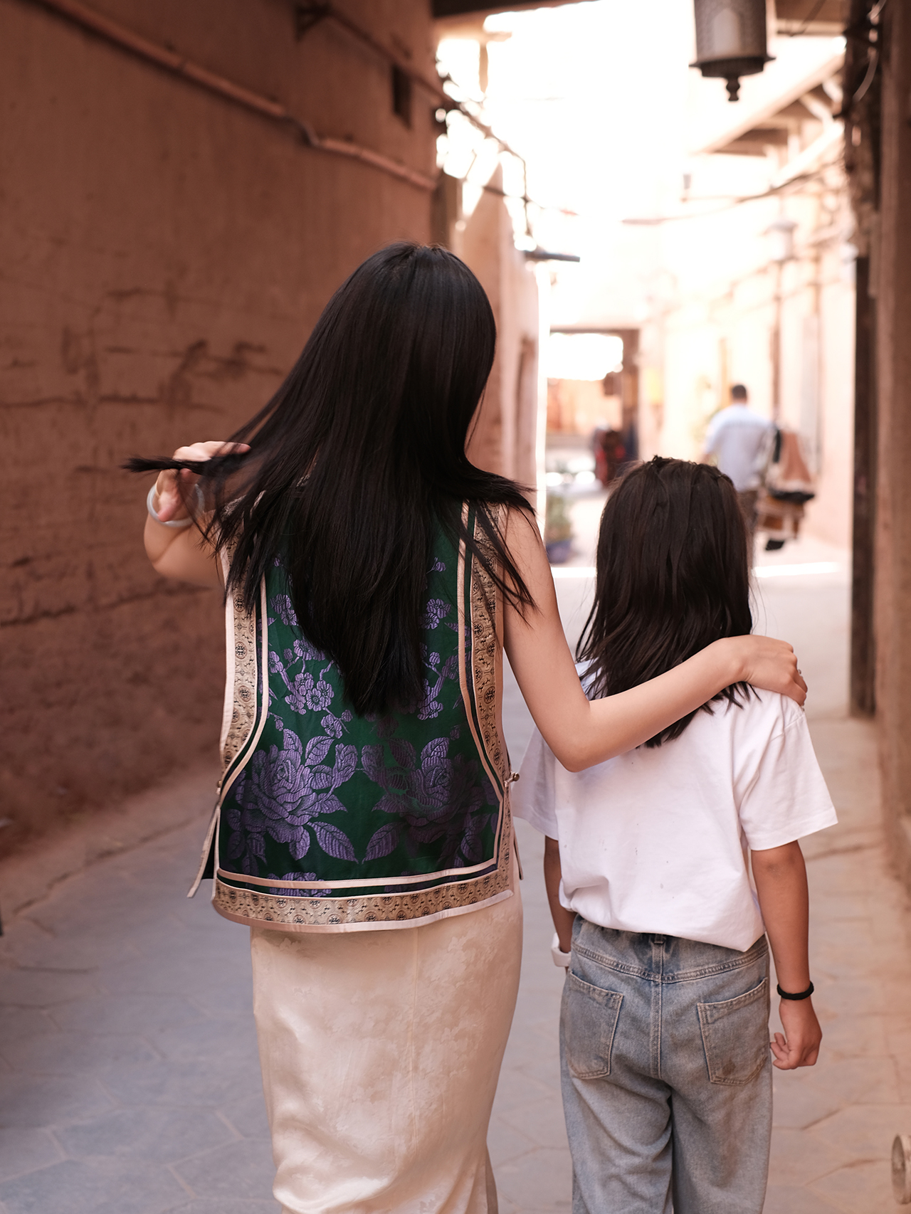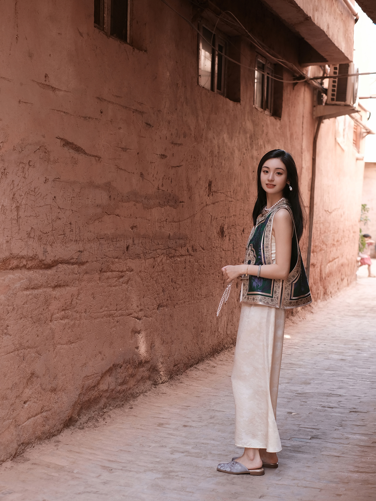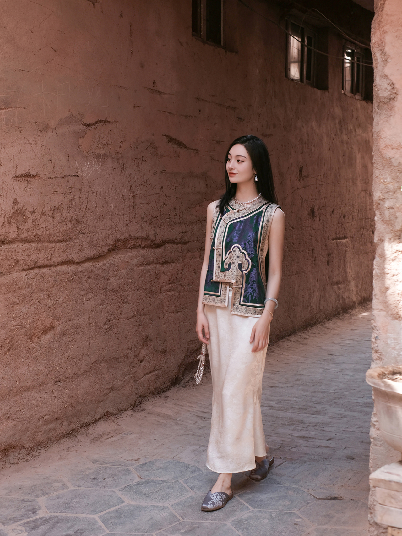 盛唐牡丹盛奢系列|老缎牡丹纹琵琶襟马夹(特殊商品不退不换)