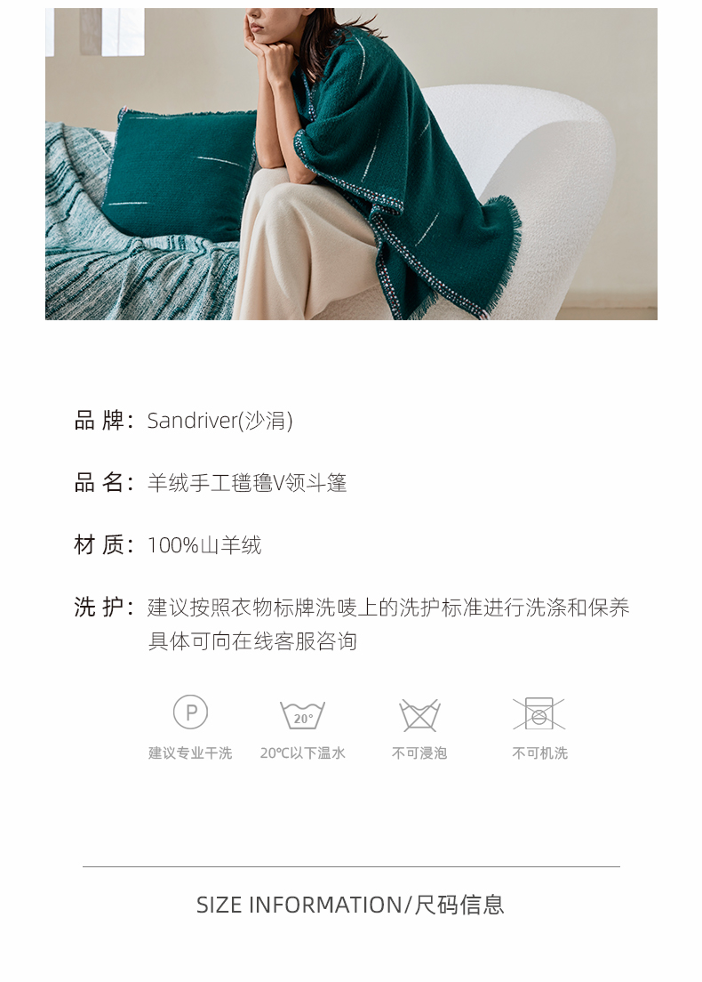 历年在巴黎时装周亮相,享誉世界的艺术羊绒品牌[Sandriver 沙涓]由羊绒布道者郭秀玲女士创立。阿拉善自有牧场纯种羔羊绒,日本国宝设计师小筱顺子,上海自有基地精工细作。承载羊绒情怀,坚持匠人品质。