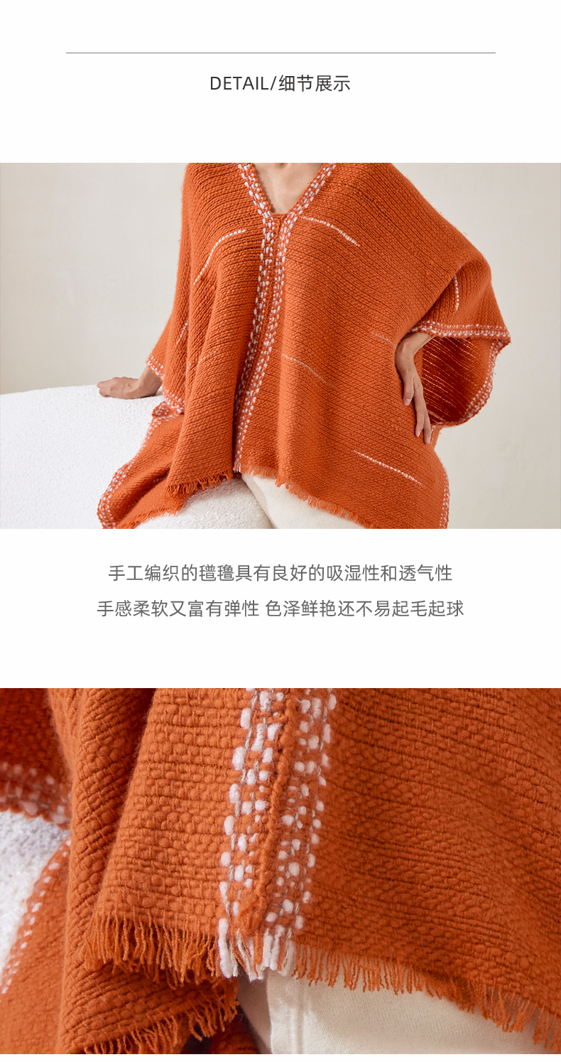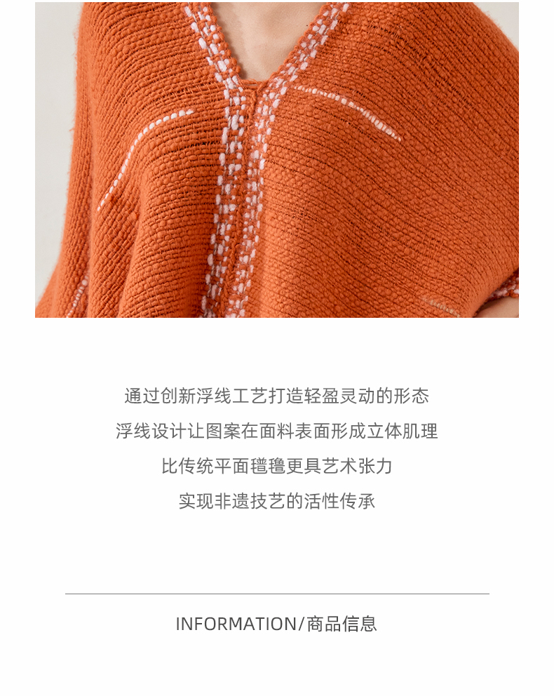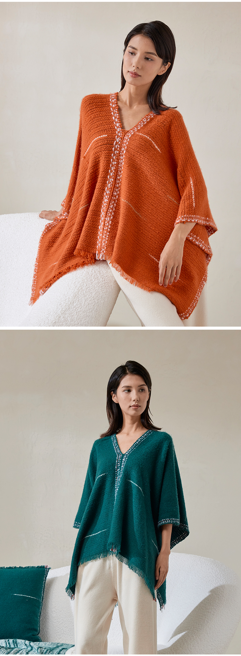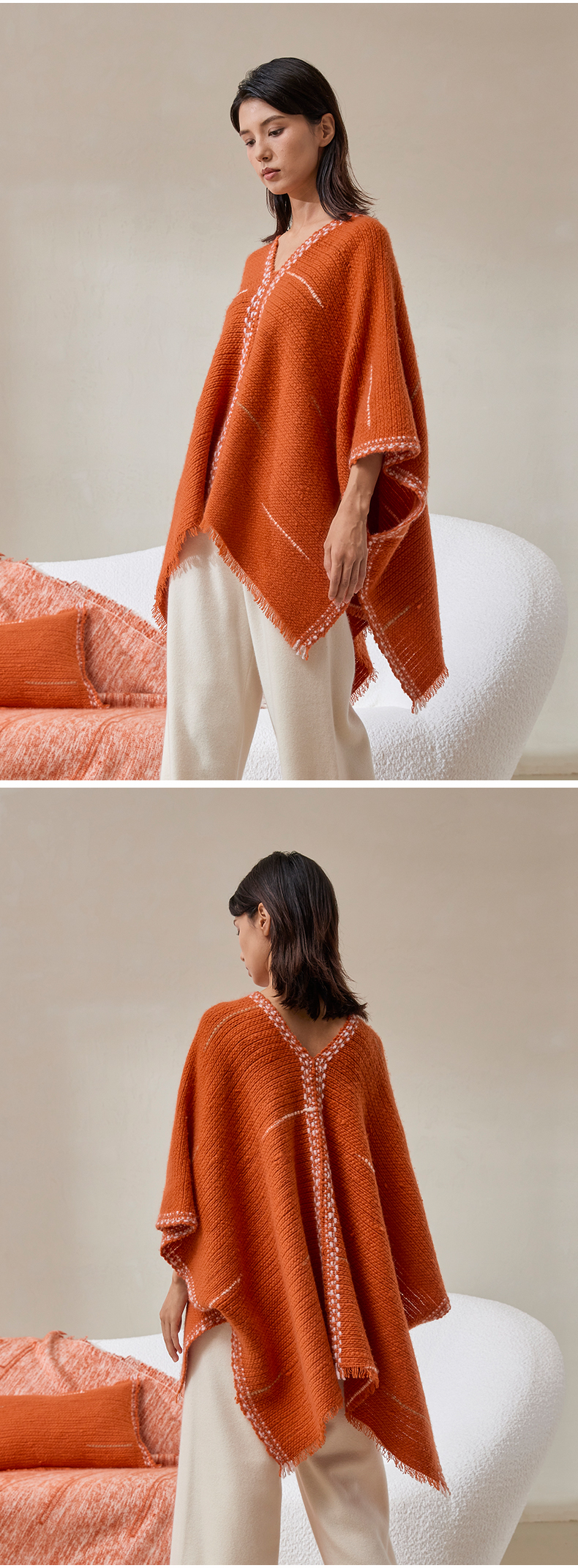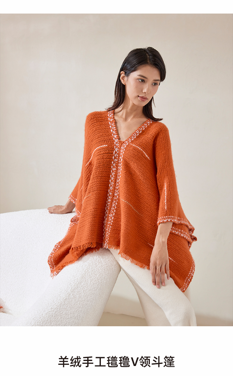 羊绒手工捻纱氆氇V领斗篷 SJF97W390N