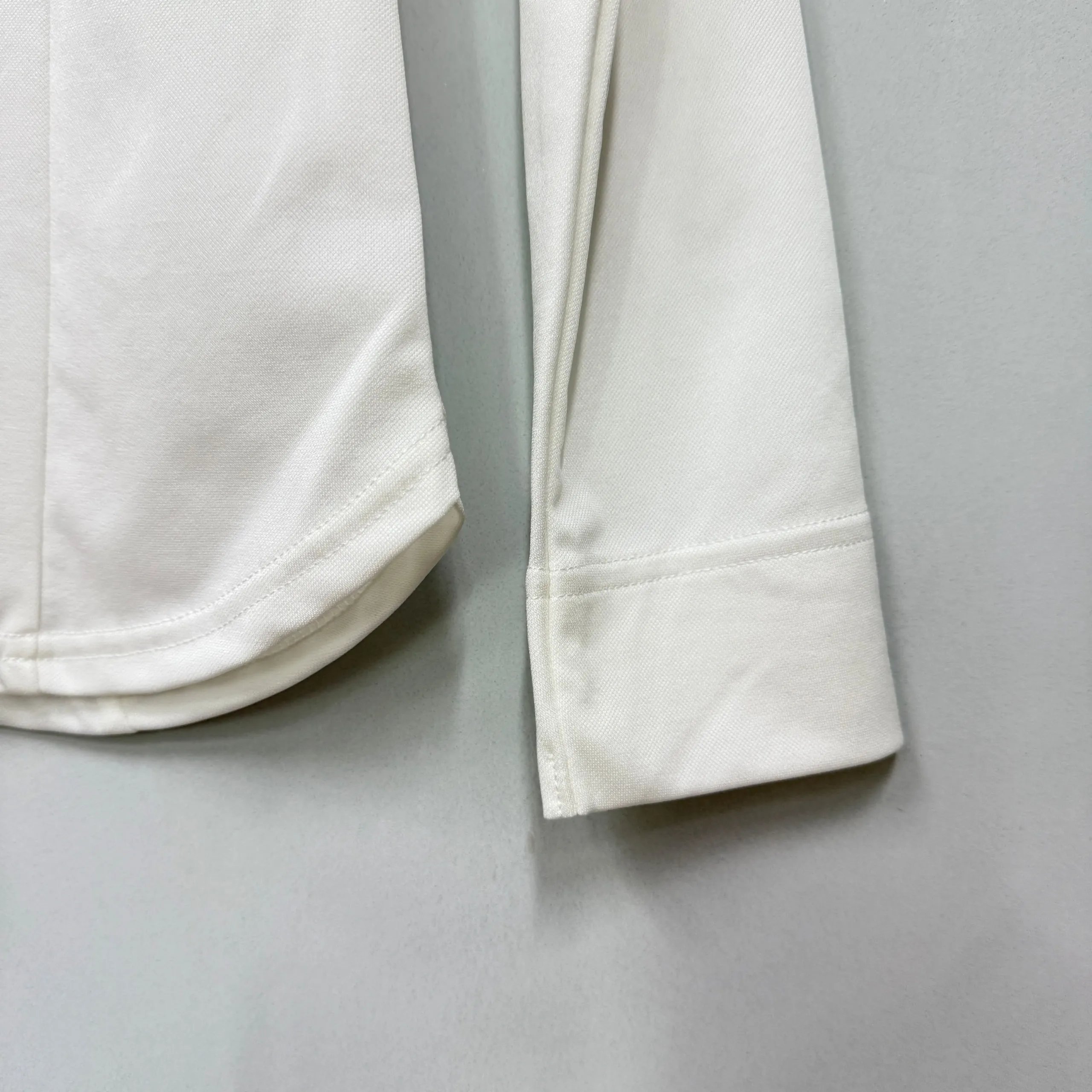 采用修身版型,贴合身形又不束缚动作;领口为经典polo领,搭配多粒纽扣,既显干练又方便穿脱调节。衣身的拼接剪裁设计,在修饰身形的同时,也提升了服装的立体感与时尚感;适合春秋或作为防晒内搭 具体尺寸: S:胸围90cm /衣长60cm /肩宽38cm /袖长58cm M:胸围94cm /衣长63cm /肩宽39cm /袖长59cm L:胸围98cm /衣长65cm /肩宽40cm /袖长60cm (Trip:尺寸均为手工测量如有1-3cm误差属正常情况) 外单保真,部分三标不齐(领标,洗标,吊牌),介意者慎拍!