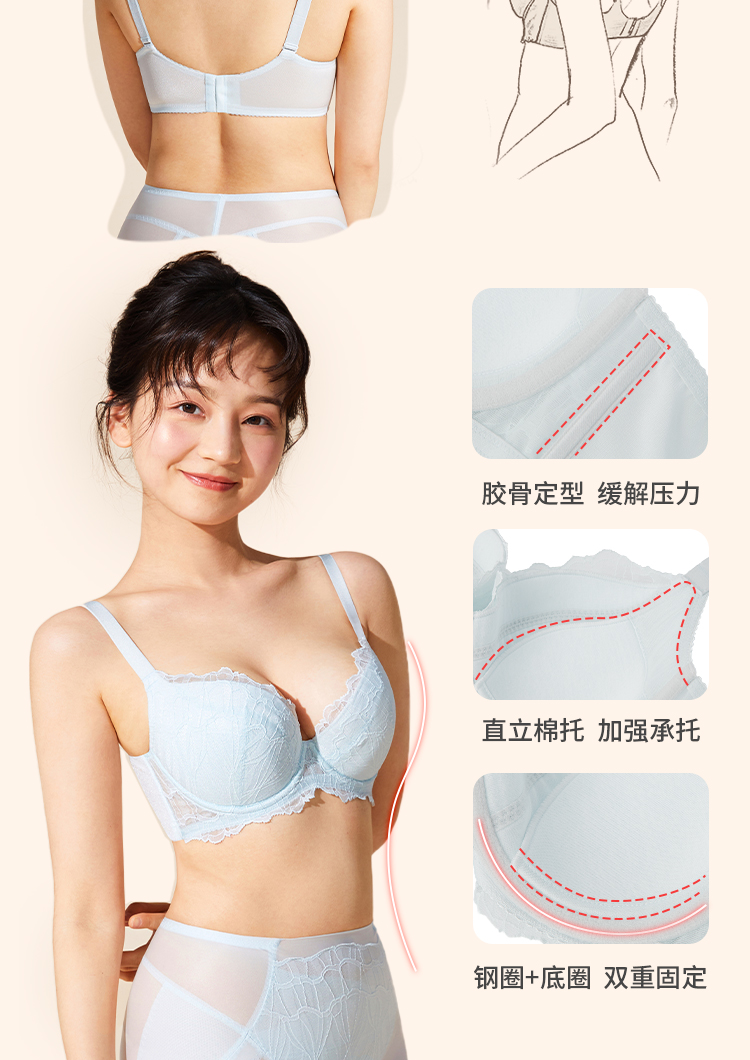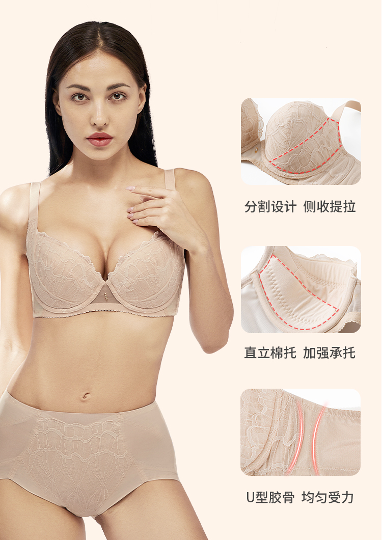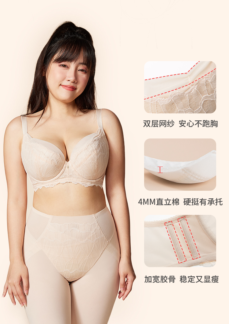 奶糖派大罩杯时光机奶油肤色上托包容稳定侧收舒适秋女大码内衣