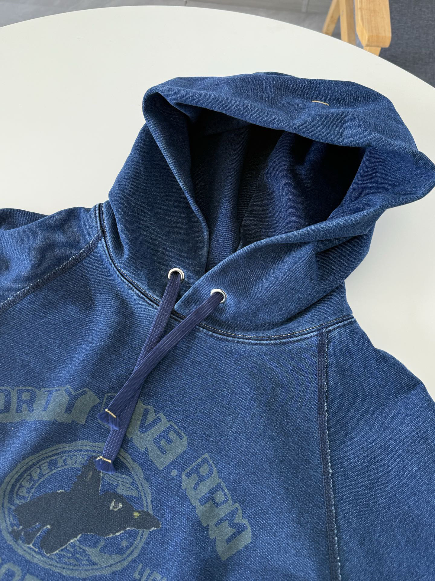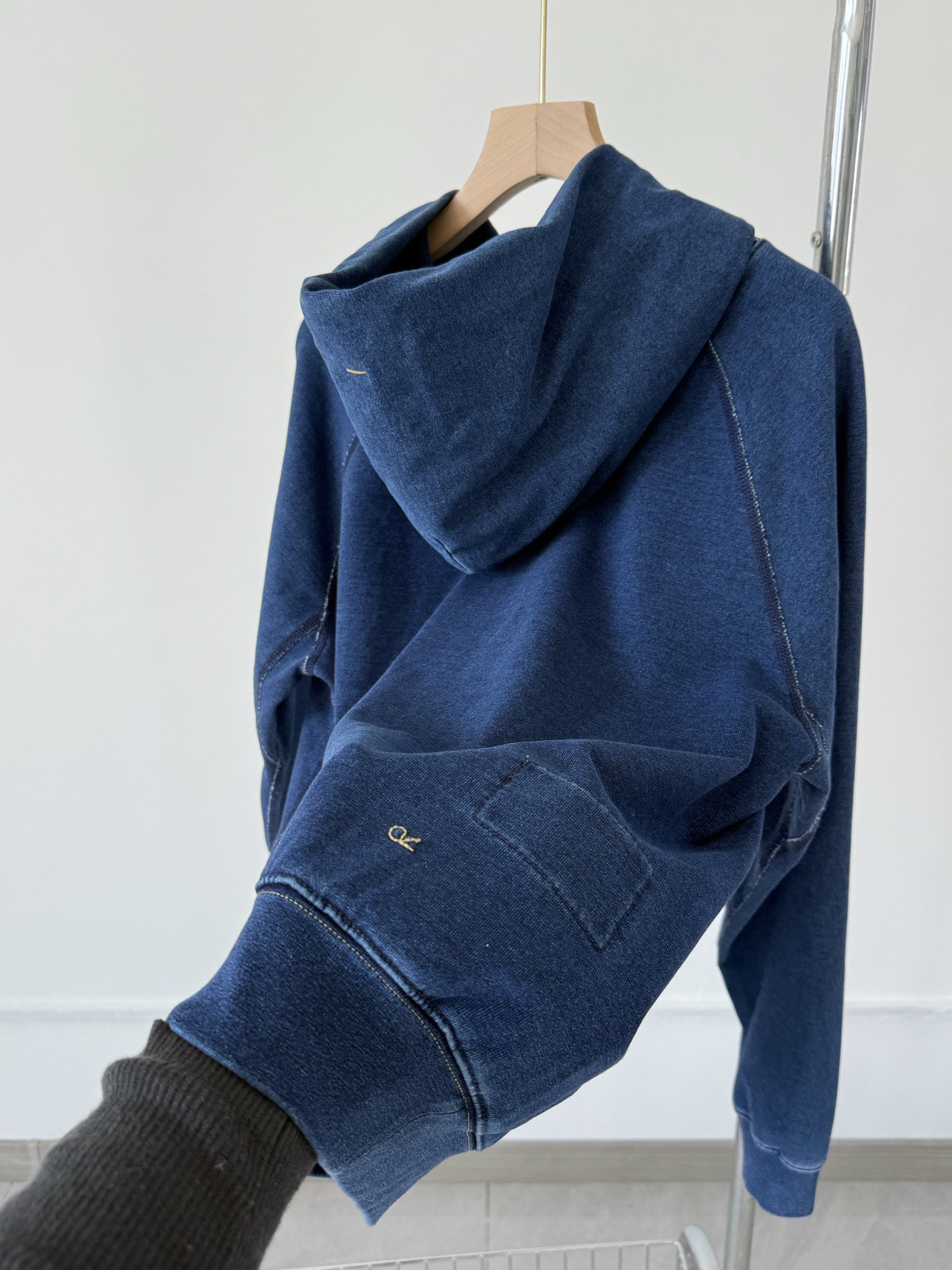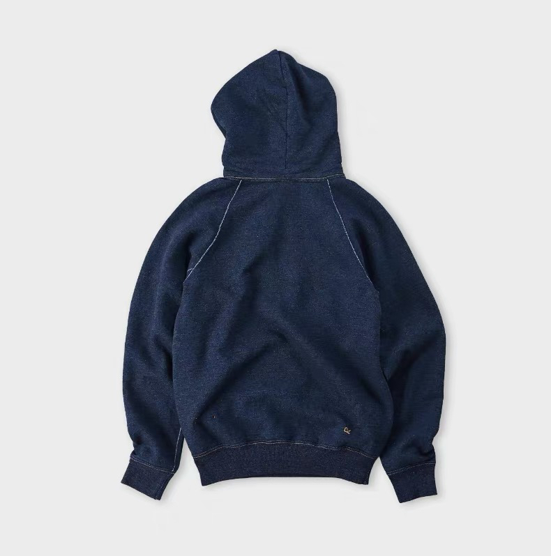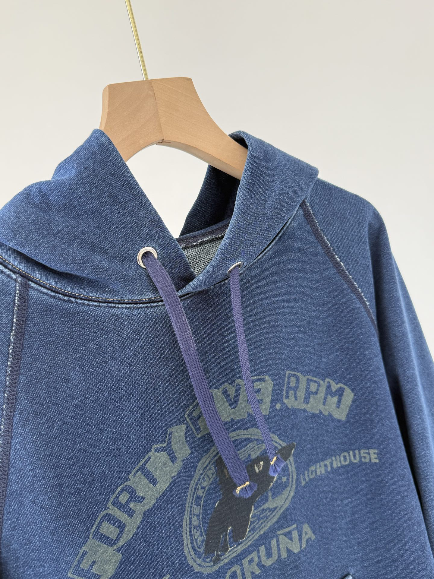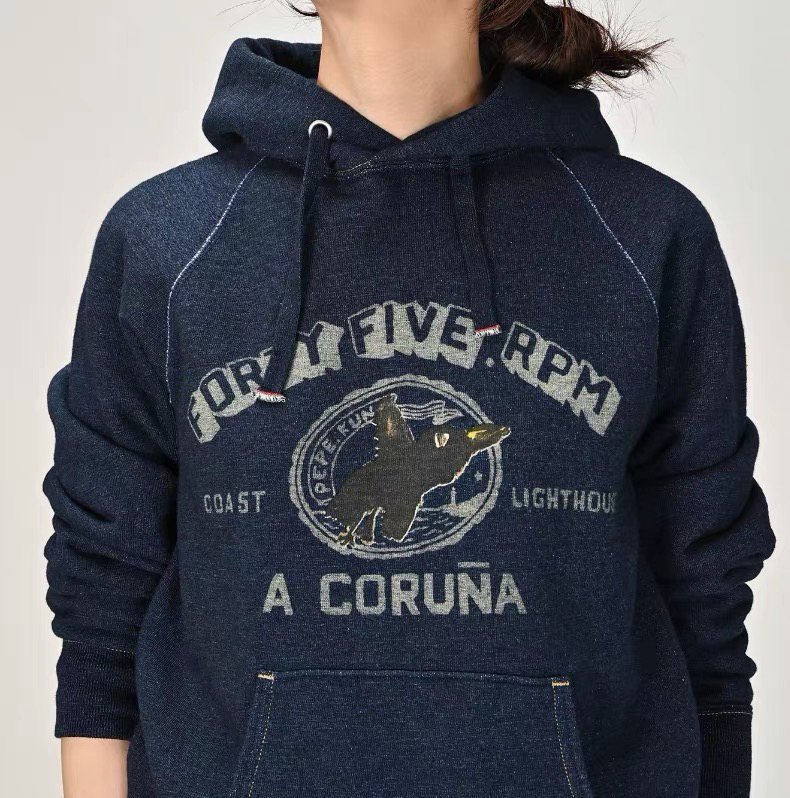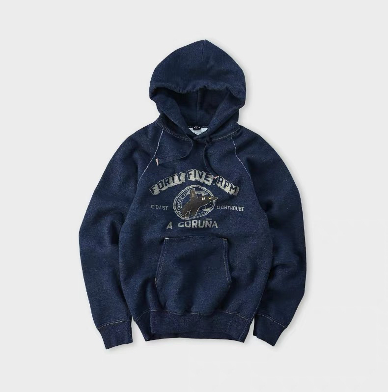 45R 日系复古 插肩袖 仿牛仔针织多次水洗 连帽毛圈卫衣