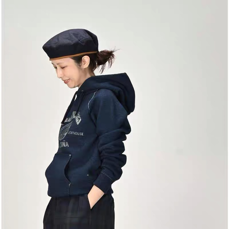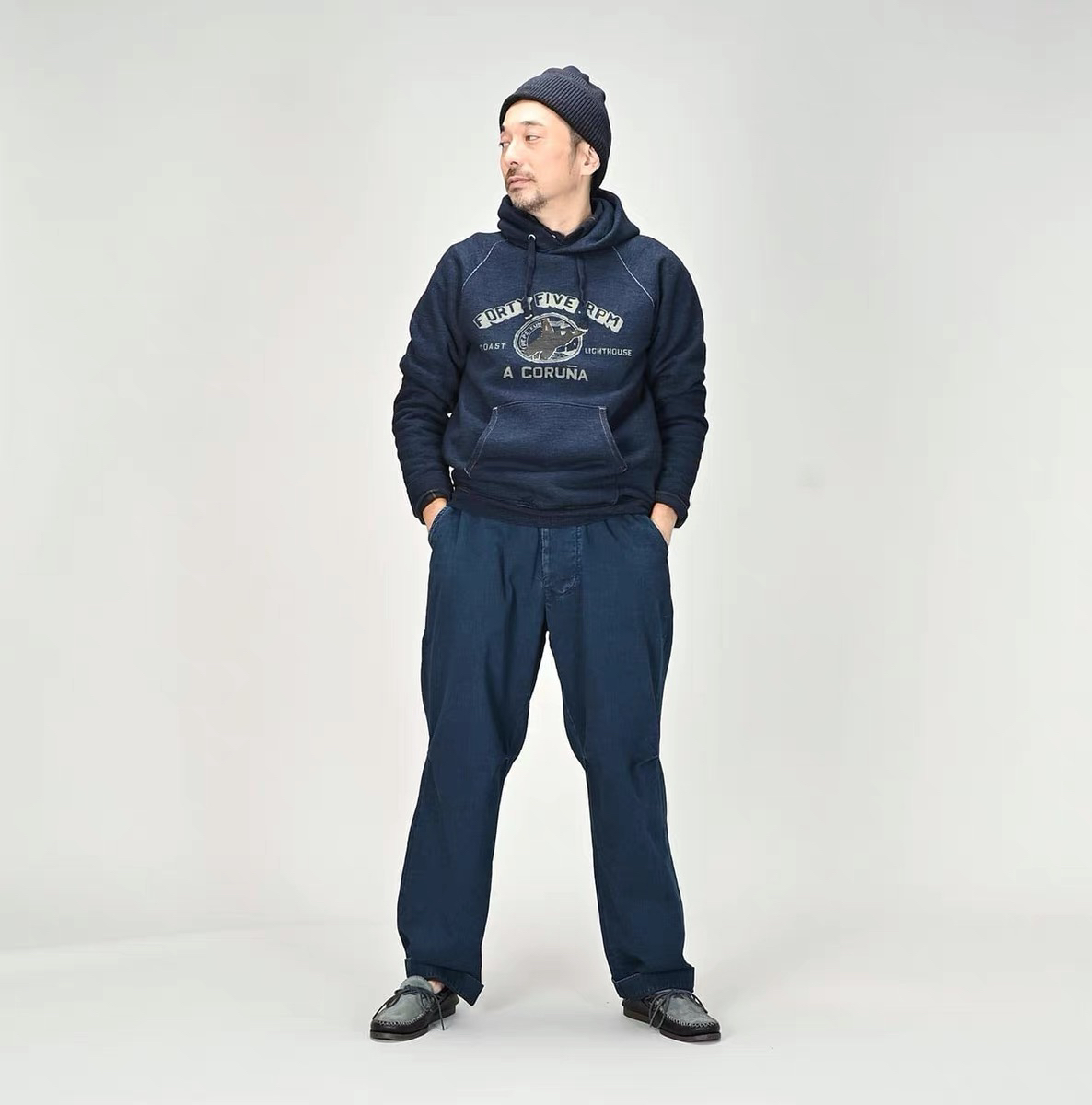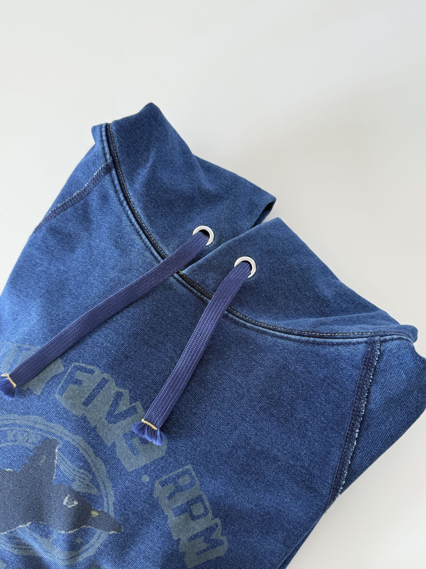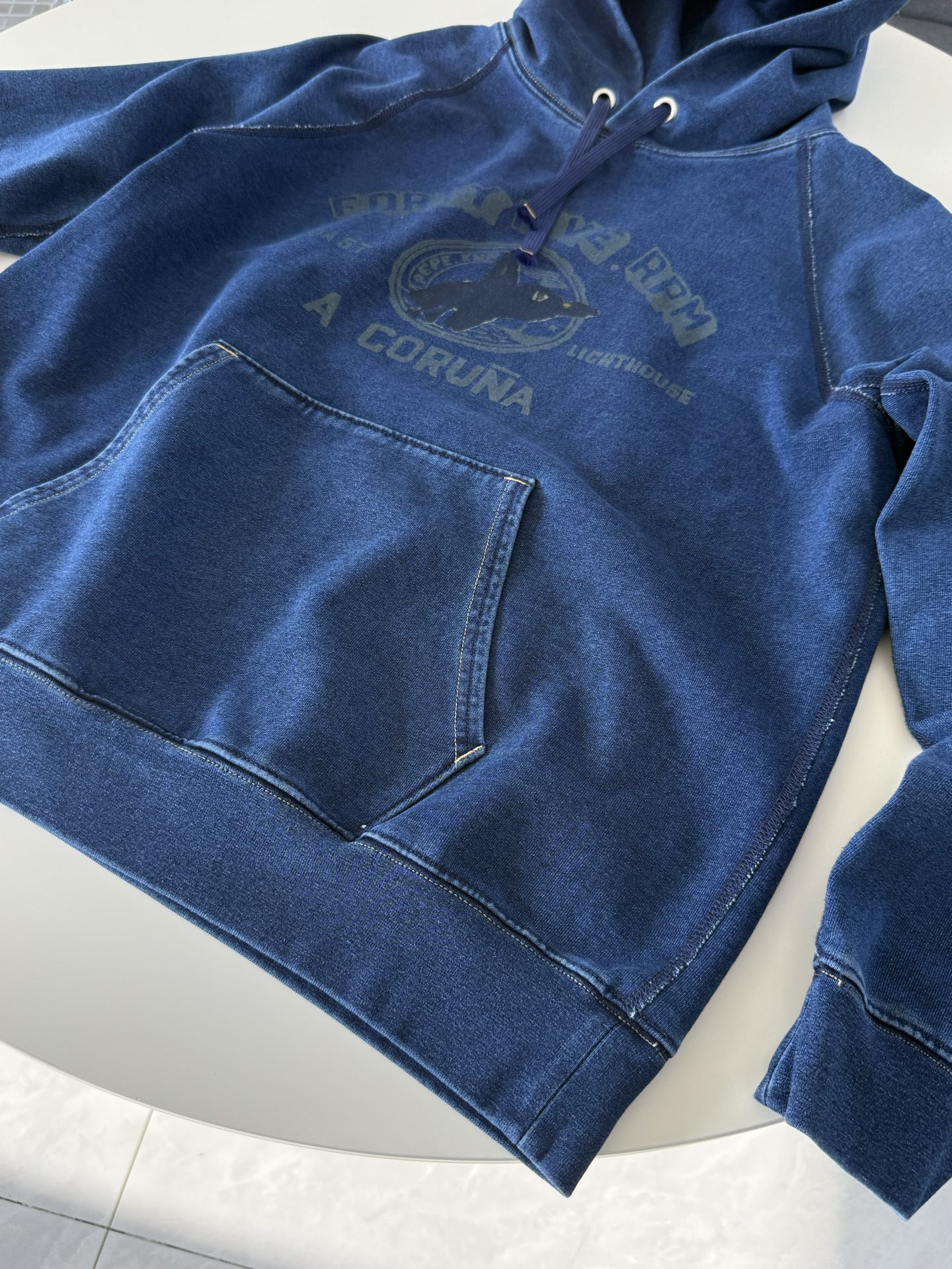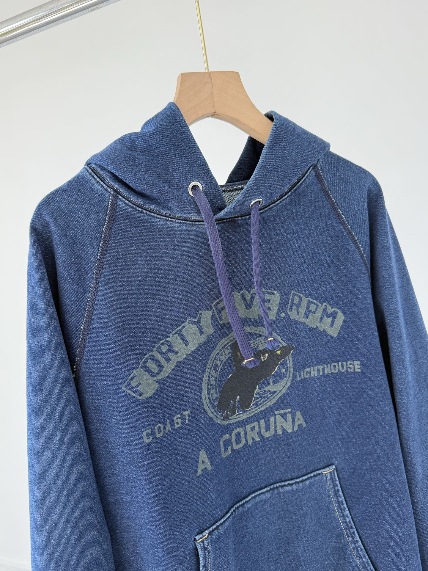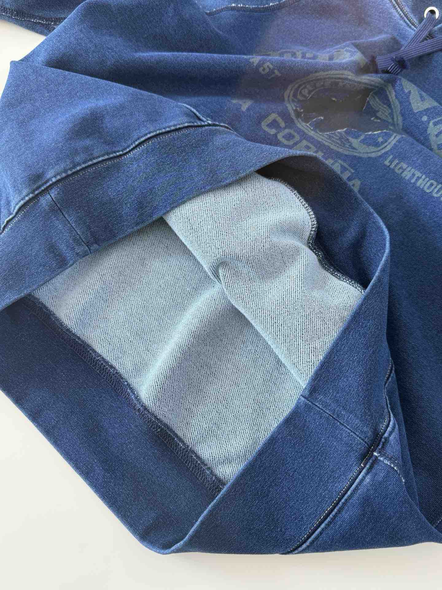 45R 日系复古 插肩袖 仿牛仔针织多次水洗 连帽毛圈卫衣