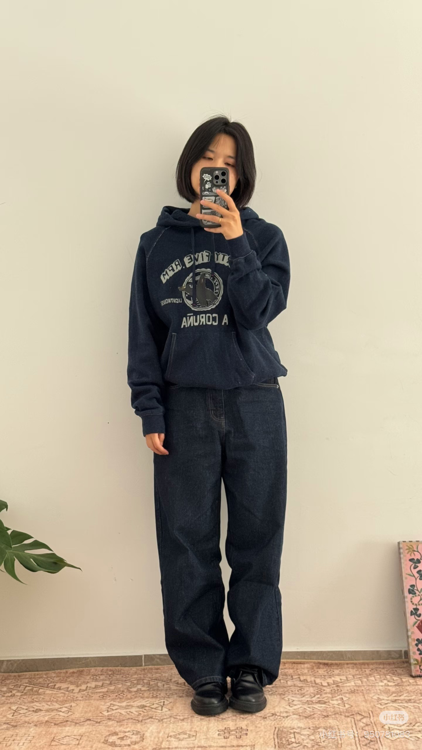 是谁还没get这件复古牛仔卫衣的魅力?做旧水洗蓝自带岁月质感,美式印花元素瞬间拉满街头腔调