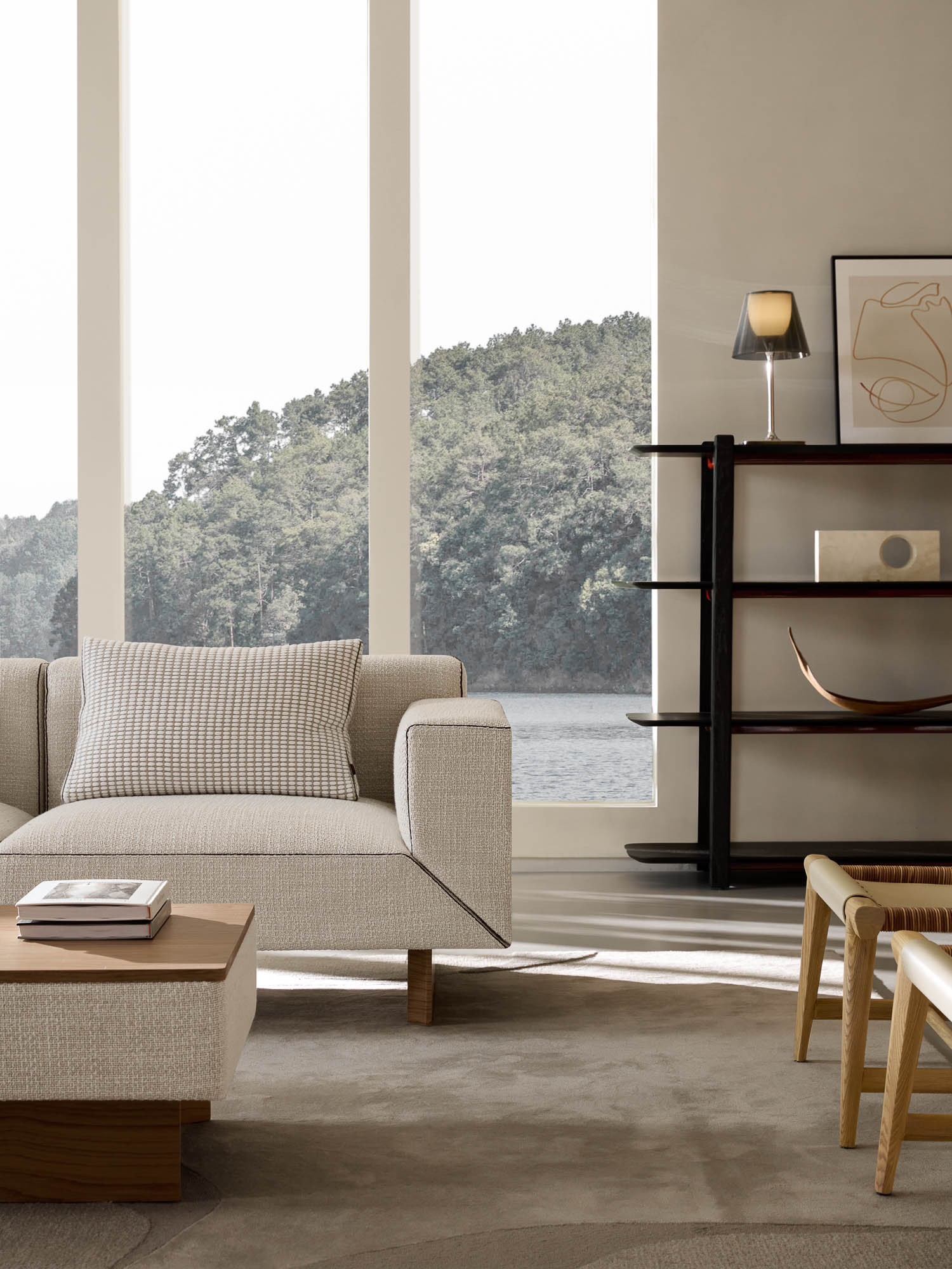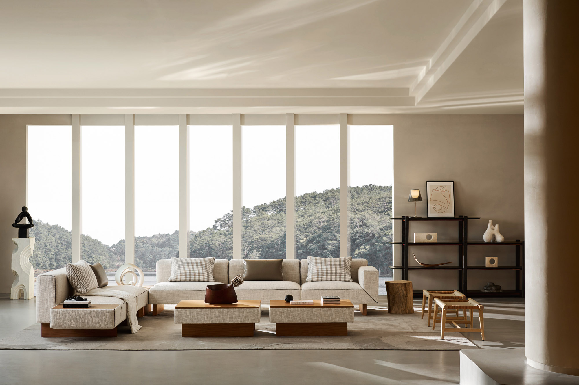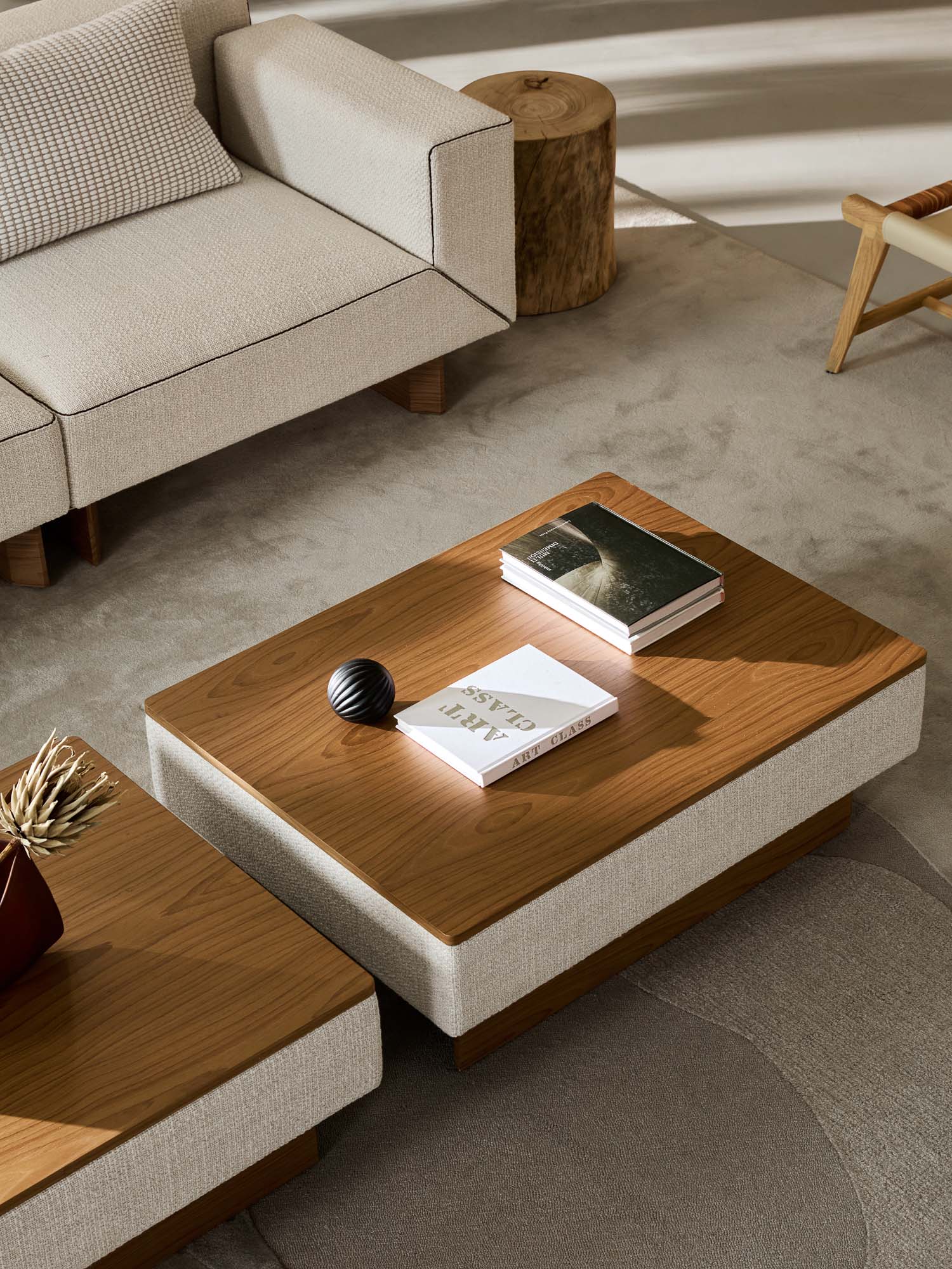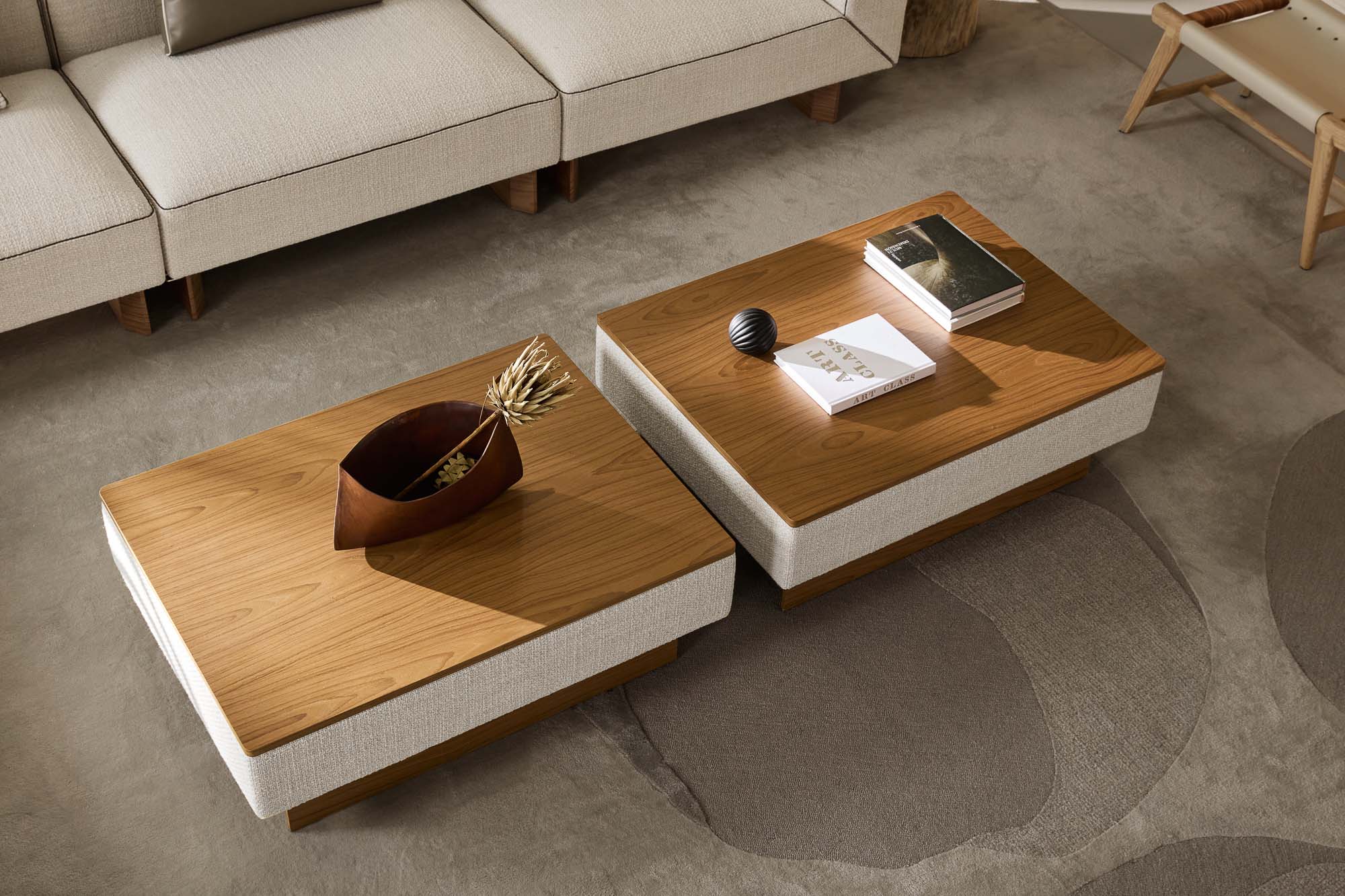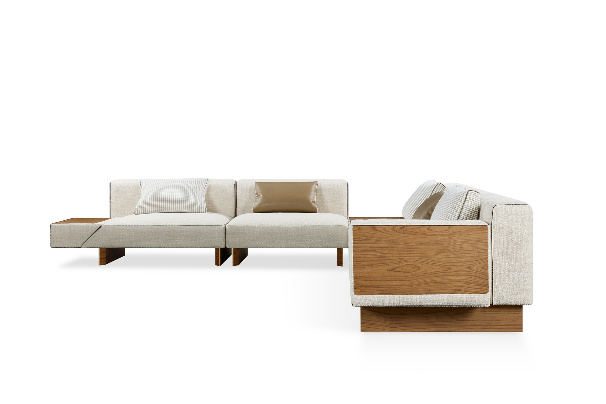 主材:涤棉麻混纺+科技胡桃哑面木皮