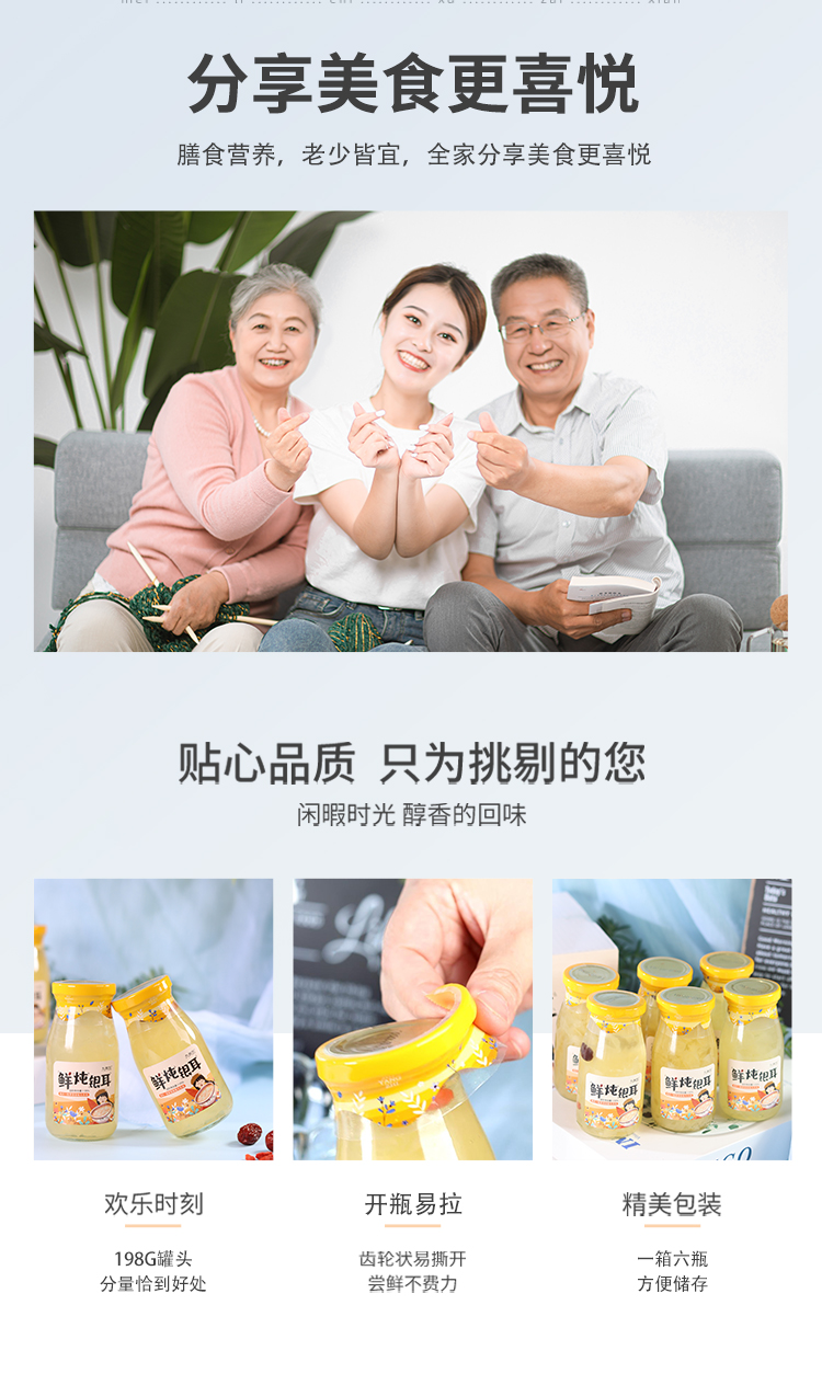 福建古田人参银耳羹 即食鲜银耳6瓶装/箱(每瓶净重198克)含包装2200克