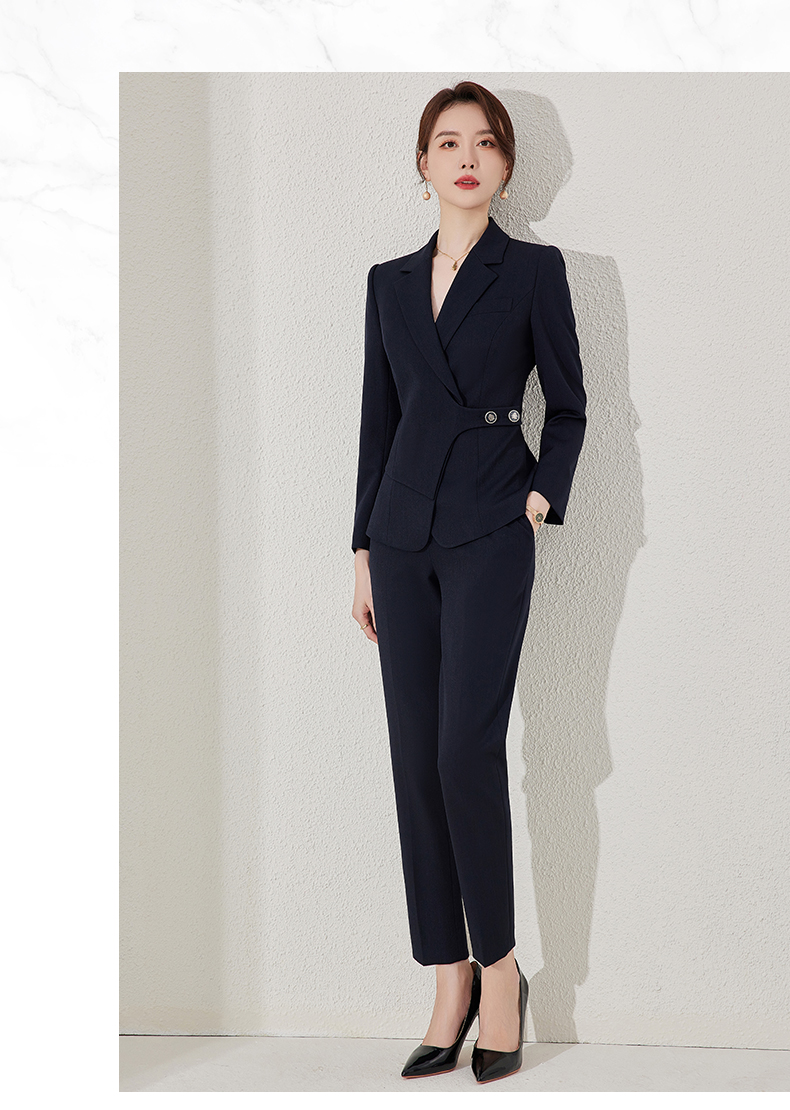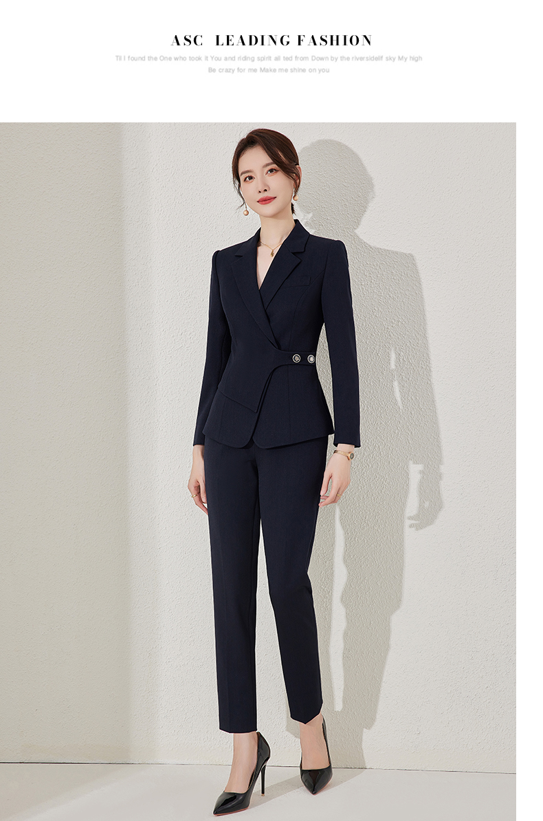 高端藏青色西装套装女早秋2023新款商务面试正装通勤售楼部工作服