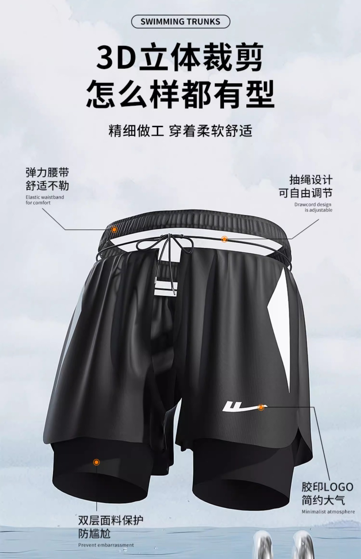 回力泳裤男士泳衣套装专业防尴尬2024新款沙滩裤大码游泳全套装备_ym