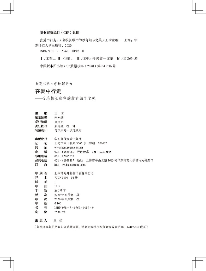 在爱中行走——9名校长眼中的教育细节之美 王珺 大夏书系·学校领导力 教师理论 教师教育 中小学教育