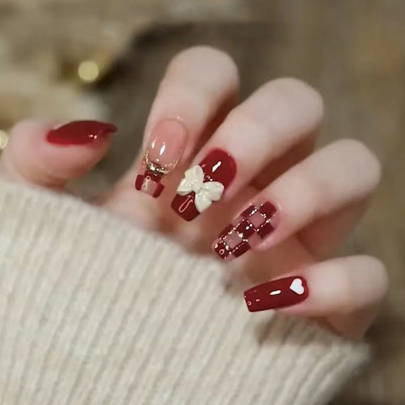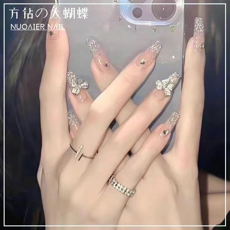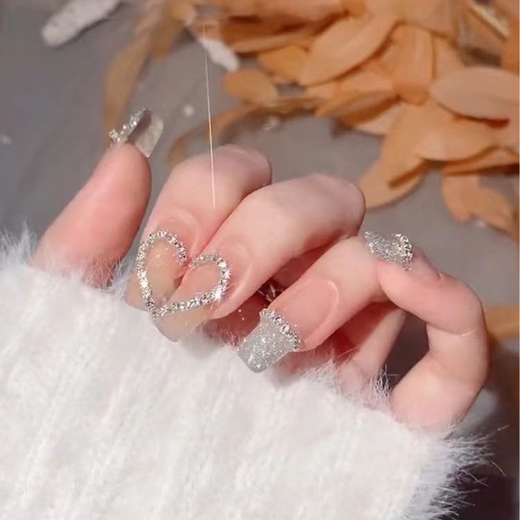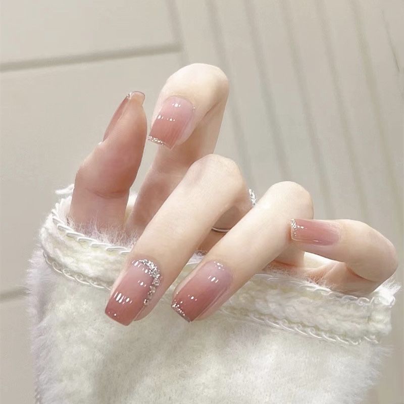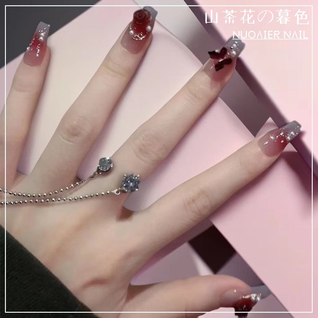 美甲穿戴甲纯欲风高级山茶花指甲贴片中长梯形显白美甲片钻款成品