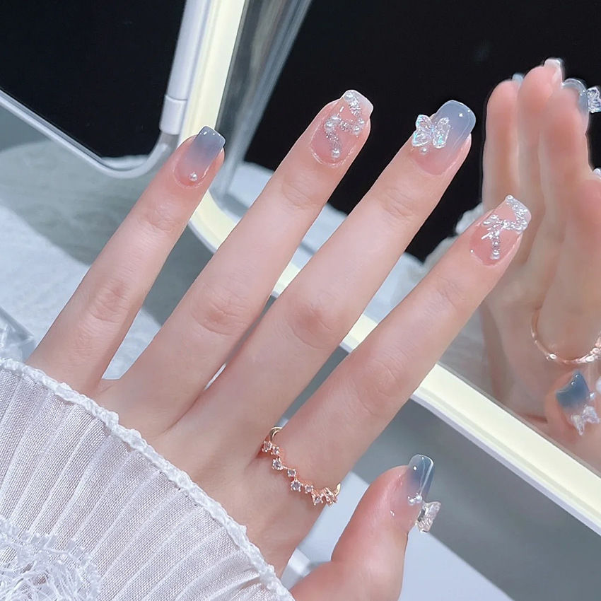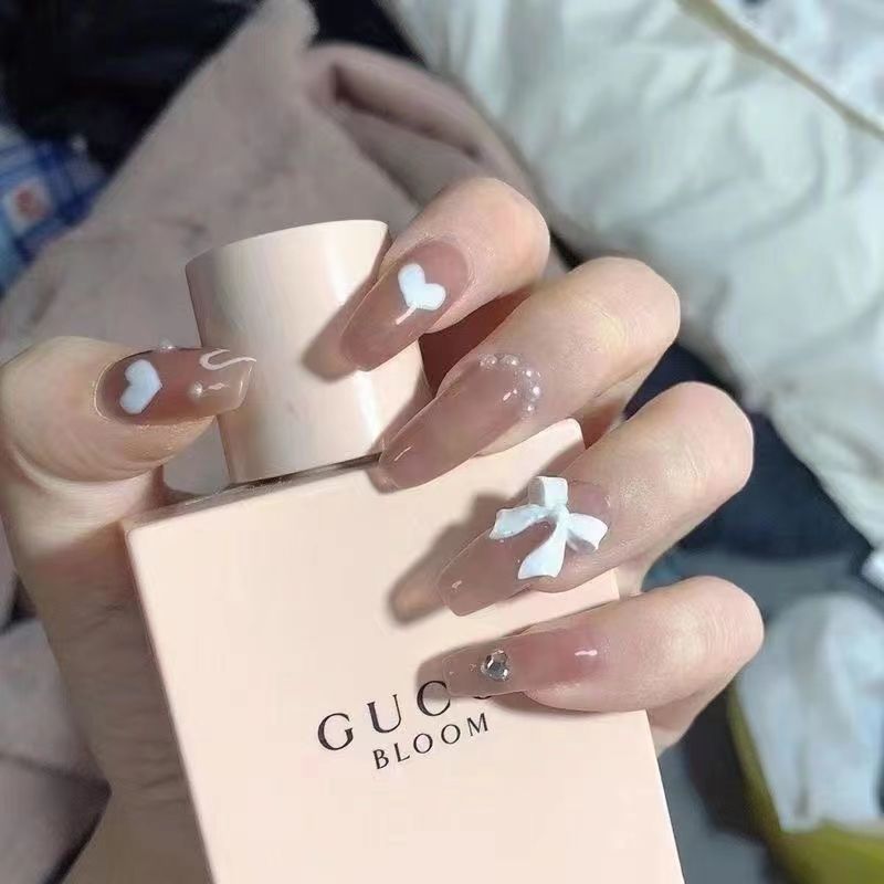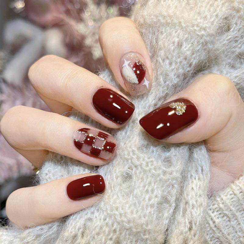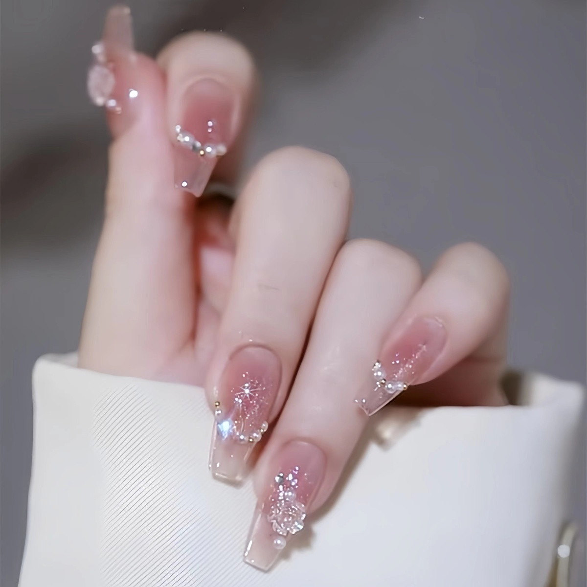 美甲穿戴甲纯欲风高级山茶花指甲贴片中长梯形显白美甲片钻款成品